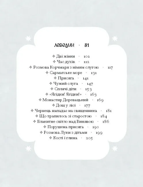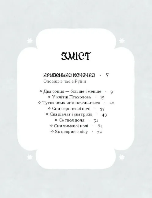 Магічний реалізм, характерний здебільшого для Латинської Америки, можна знайти і в наших реаліях. Він має галицький колорит із присмаком історії. Представниця українських готики та магічного реалізму, лауреатка Шевченківської премії, Галина Пагутяк проводить читача текстами, де серед туману постають зниклі міста, леви і райські пташки, а над головою світить два сонця - і не вгадаєш, котре справжнє. До книжки увійшли повісті «Кривенька качечка» та «Лебедин». Кожна відгукнеться і залишиться невагомою м’якою пір'їною в серці.