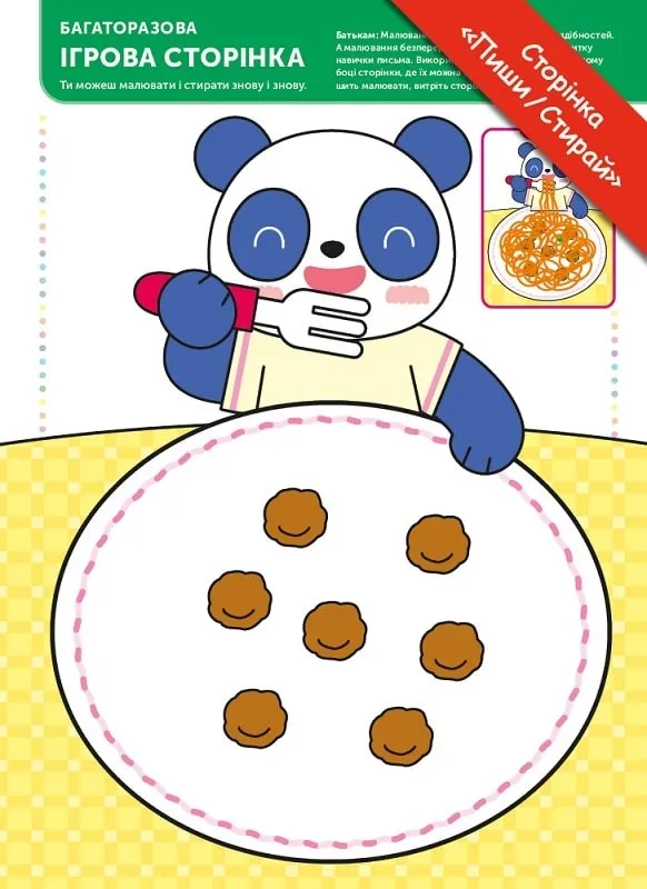 Книжка є першим кроком малюка віком від двох до чотирьох років до осягнення навичок, що стануть потрібними у початковій школі.\ Малюк навчиться критично мислити, розуміти числа і математичні операції, спілкуватися. Книжка побудована у формі веселих вправ, кожна з яких займає одну сторінку. Виконуючи завдання, малюк бавиться і водночас розвивається.