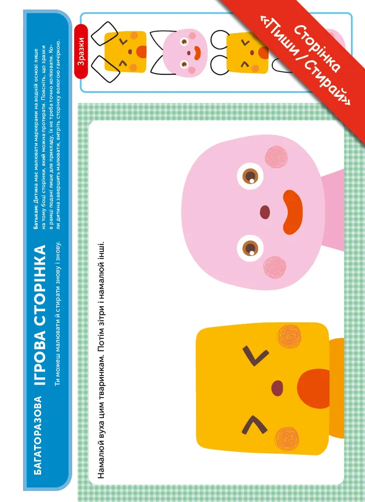 Працюючи з цією книжкою, ваш малюк розвине такі потрібні для дошкільної освіти навички, як-от виконання вказівок та завдань. Водночас попрактикується розпізнавати послідовності, визначати відмінності, лічити від одного до п’яти, порівнювати, де більше, де менше, виявляти закономірності, навчиться думати наперед і вирішувати проблеми. Основна увага у цьому зошиті надається завданням на розмірковування, вияв фантазії, зосередженість.