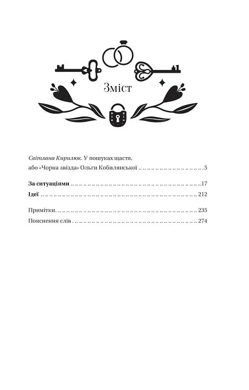 Жінка та її «взаємини» зі світом — головна тема прози Ольги Кобилянської. Щасливо вийти заміж чи знехтувати особистим щастям заради мистецтва? Це та точка, у якій фокусуються пошуки в повісті «За ситуаціями» й новелі «Ідеї». Фатальний збіг обставин, містичні знаки й сеанси гіпнозу переплітаються з розмовами про народ і музику, вибір життєвого шляху і хаос жіночої душі, гроші і зраду в різних її варіантах. І ще — два чоловіки, між якими неможливо знайти рівновагу дівчині з химерним характером і екзотичним ім’ям Аглая-Феліцітас у світі, що вже відчуває на собі подих Першої світової війни.Достатньо буде й кількох сторінок, аби зрозуміти — те, як і про що пише Ольга Кобилянська близьке сучасним читачкам, так само як і жінкам минулого. І справді, мало є настільки обдарованих письменниць, чиї думки виходили б за рамки парадигми мислення певного часу і ставали універсальними для різних поколінь.