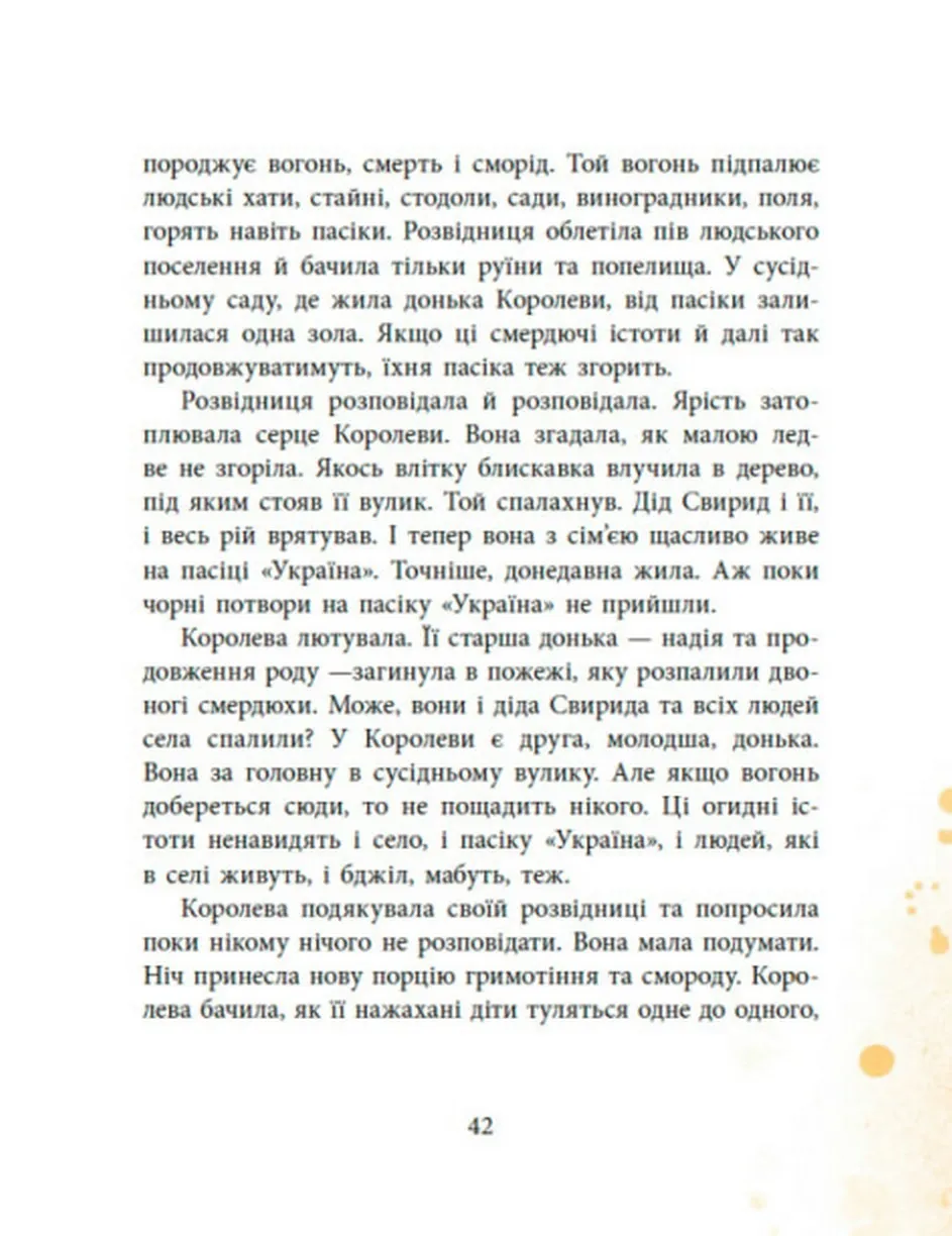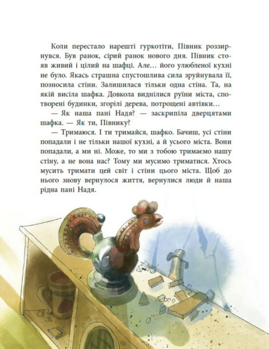 Це казки про життя. Бо воно варте добрих казок. У маленьких містечках і селах, у столиці, у широких заплавах, лісах і безкраїх степах творяться дива, герої долають зло, мудрість бере гору над зухвалістю. Добрі персонажі цих добрих казок з війни — бджоли, гуси, лис, міфічний і повітряний змії, глиняний півник і навіть бабай із Чорнобаївки — пліч-о-пліч із людьми відстоюють своє майбутнє. Кожен з них надихає своєю сміливістю, відданістю, мудрістю і стійкістю. Це казки про війну. Бо добро й сили світла завжди мають перемагати пітьму. Тут тварини, міфічні істоти й навіть повітряний змій та глиняний півник мають українську душу й стають помічниками наших воїнів. Адже сили рідної землі на боці правди — на нашому боці.