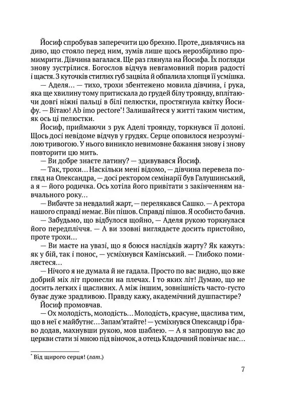 Одвічне почуття, котре мов вірус влучає в людей різного віку, статку, становища, не минає й людей в рясах, у церквах і монастирях. У сюжетній лінії роману «Чорні морелі» лежить романтичне кохання улюбленця Митрополита Андрея Шептицького, семінариста духовної семінарії Святого Духа Йосифа Кладочного та Аделі Ліщинської. Попри важкі випробування долі, вони пронесли його у своїх серцях, залишивши кохання непорочним, вічним та величним.