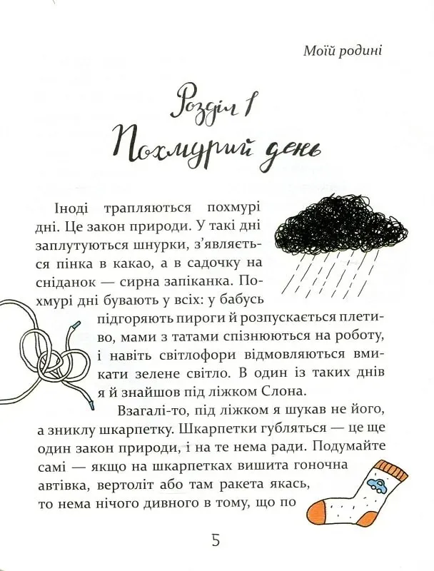 Одного дня він вихорцем вривається у життя хлопчика Сані та його родини і назавжди змінює їх «звичайне існування». З того моменту, як Саня знаходить під своїм ліжком Штруделя — незвичайного слона із рідкісним забарвленням та пристрастю до солоденького, — життя хлопця сповнюється пригод та цікавинок. Разом вони дізнаються украй багато важливих речей, наприклад: чому трапляється форс-мажор, навіщо для кохання зуби й що кладуть у похідну валізу. А ще зрозуміють, як багато значать у житті турбота й родина.