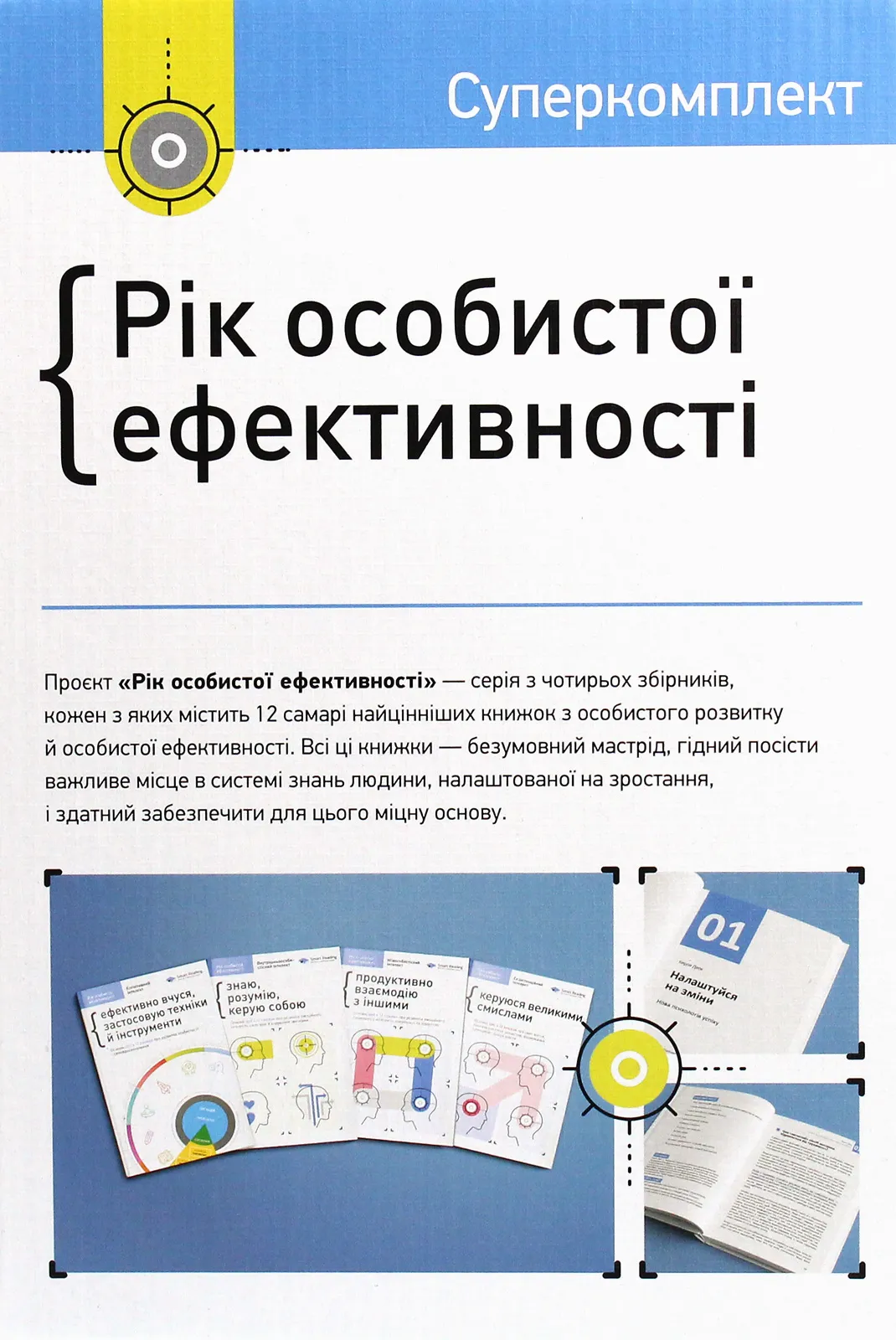 48 добірних бестселерів про розвиток в одному комплекті з чотирьох збірників самарі. Ви зможете прокачати когнітивний, внутрішньоособистісний, міжособистісний і екзистенційний інтелект, у багато разів розвинувши і примноживши особисту ефективність!