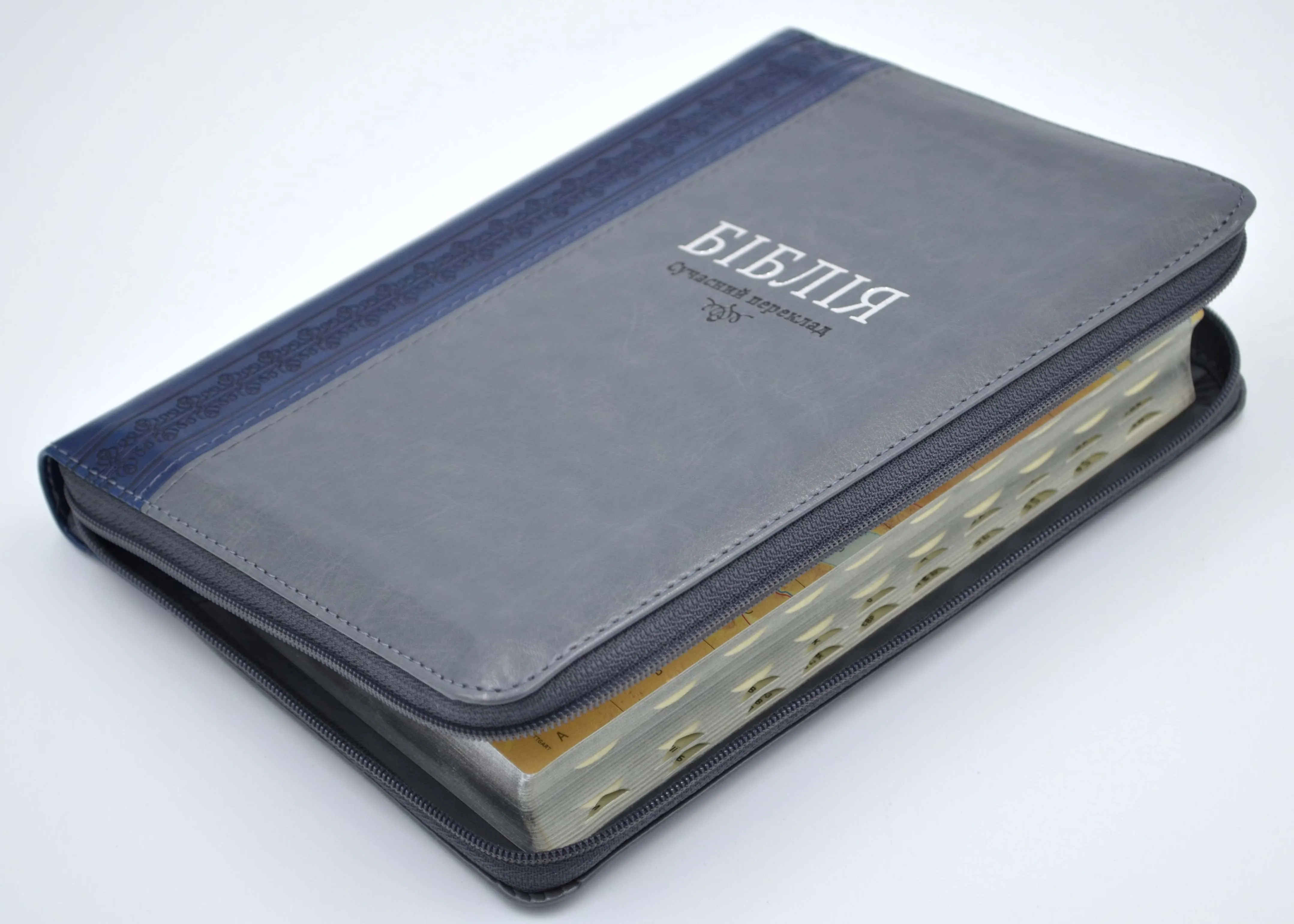 Біблія. Сучасний переклад. 10563 Сіра з синьою смужкою (замок, замінник шкіри)