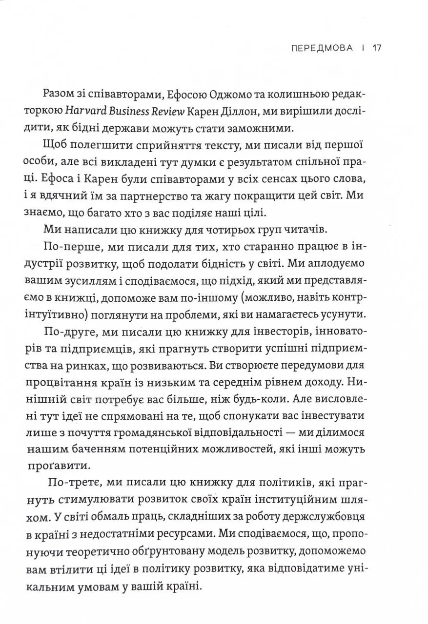 Ідеї в цій книзі допоможуть компаніям, які відчайдушно прагнуть справжнього, довгострокового зростання, побачити реальний, стійкий прогрес там, де вони раніше зазнавали невдачі. Книжка буде корисною для підприємців, публічних управлінців та політиків, допомагаючи їм краще розуміти закони ринку та парадокс процвітання, який, на думку авторів, відбувається всередині країни, а не приходить ззовні.
