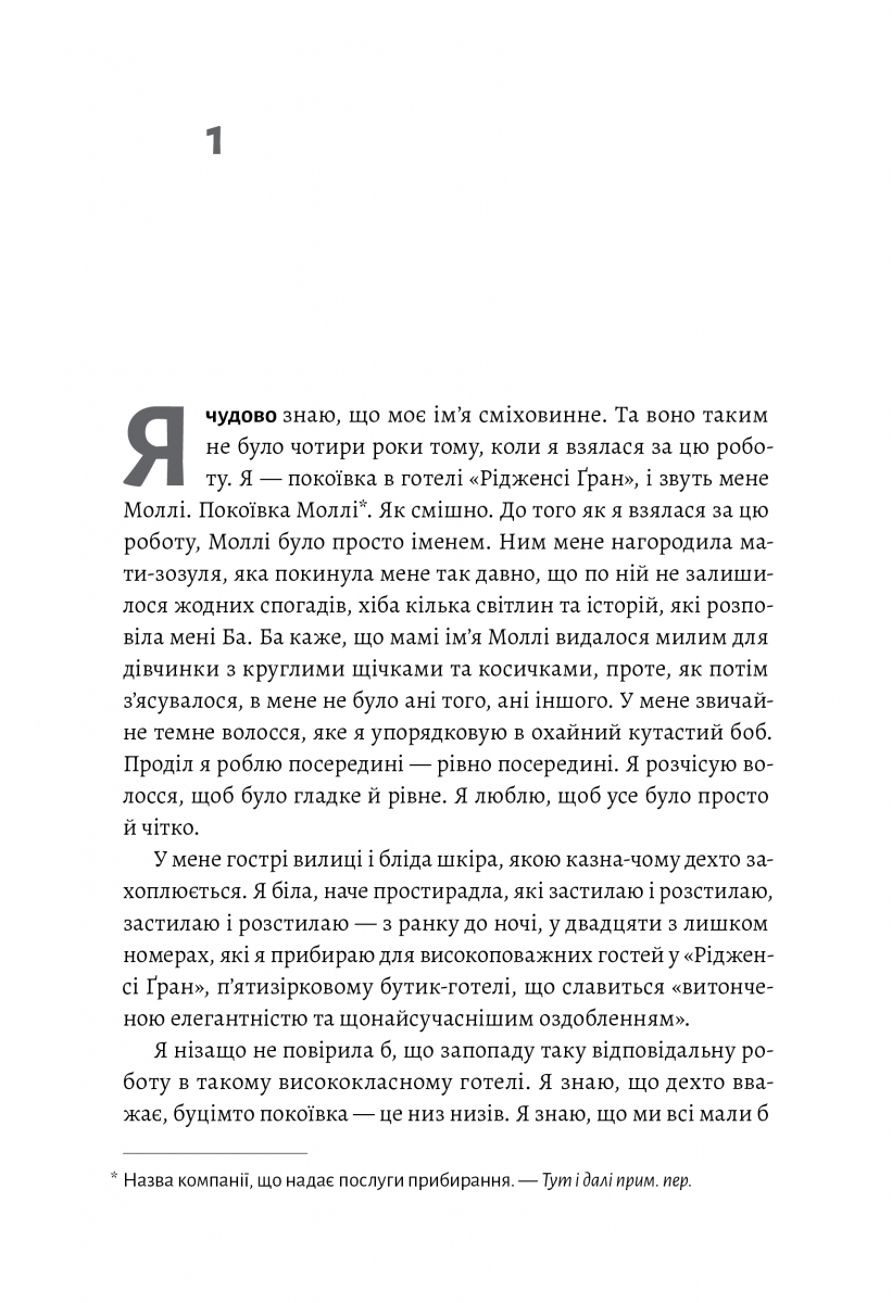 Моллі Грей не така, як всі — вона не розуміє людей навколо і не вписується у соціальні стандарти. Кілька місяців тому померла її улюблена бабуся, тож розраду вона знайшла у роботі покоївки. Їй подобається досконало прибирати кімнати готелю і зникати до приходу гостей. Життя Моллі перевертається у той день, коли в одному з номерів вона знаходить труп постійного клієнта — багатія Чарльза Блека. Героїня стає першою і головною підозрюваною. Розгадати цю головоломку і підібрати ключі до таємниці доводиться самій Моллі.