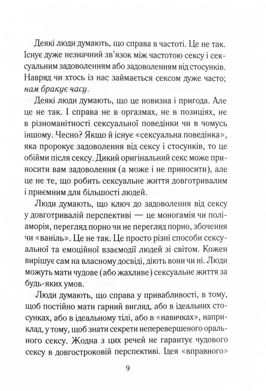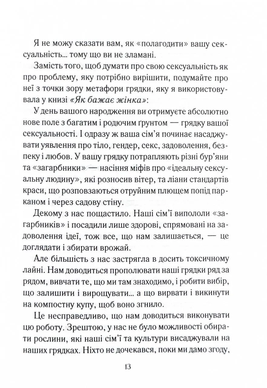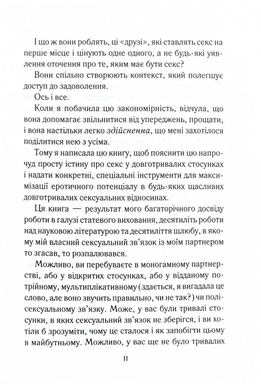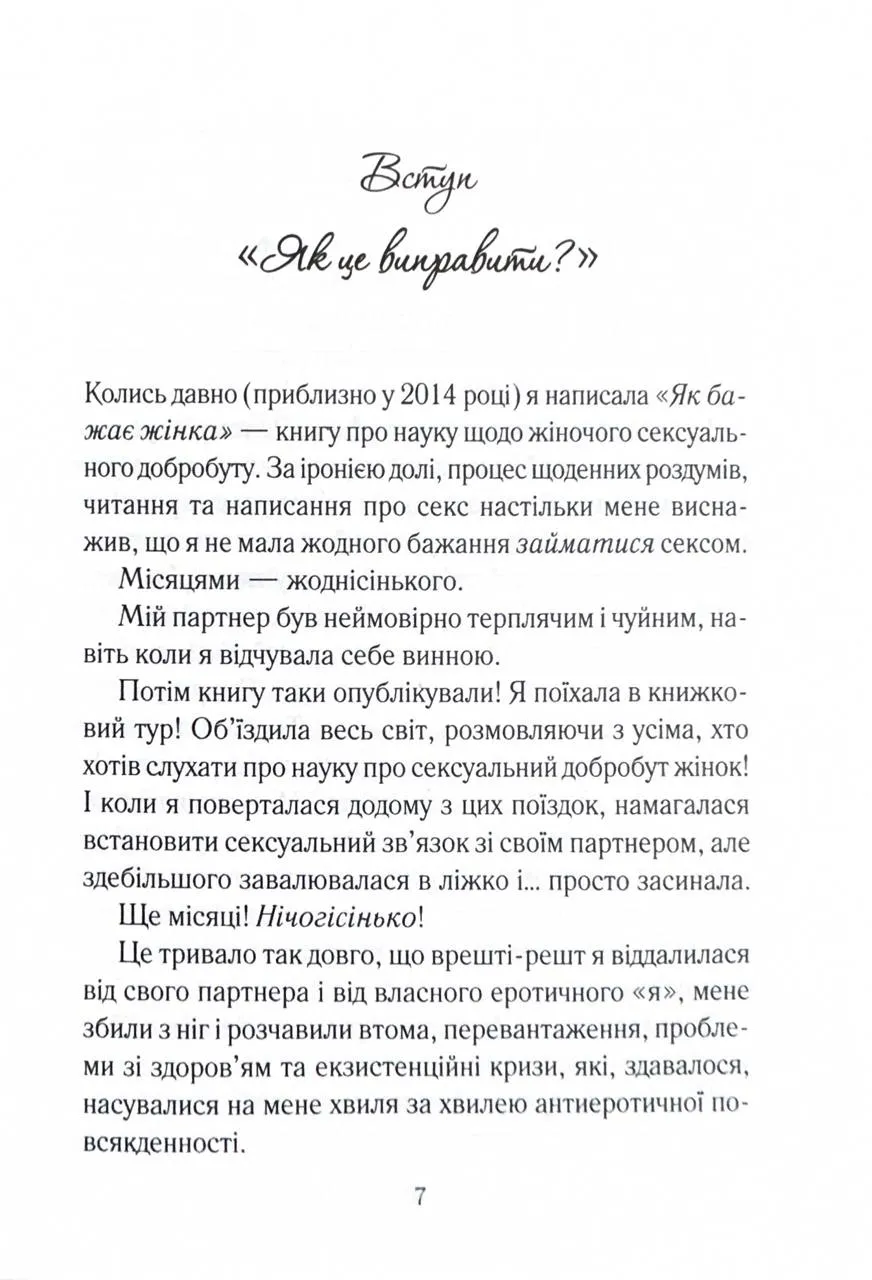 «Як довго бажає жінка» - це всеохопна, доброзичлива та обнадійлива книжка. Кожна пара, яка має тривалі стосунки, знайде щось корисне для себе. Існує твердження, що у тривалих стосунках складно підтримувати щасливе інтимне життя. Мовляв, бажання та задоволення є найвищими на початку стосунків і неминуче знижуються з роками. Та невже подружжя або пари, які давно зустрічаються, із часом приречені на незадовільний секс? Емілі Наґоскі розвіює міфи про сексуальне життя з постійними партнерами та дає дієві поради, як отримувати задоволення від фізичної близькості тим, хто вже давно знає свою другу половинку.