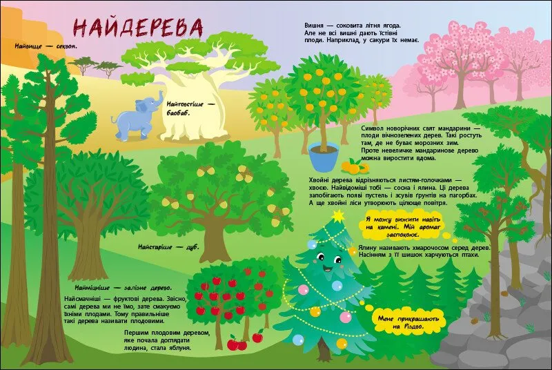 Розгорніть книжку — роздивіться картинки — познайомтесь із таємним життям рослин. Зупиніться на хвилинку, прислухайтесь: «ШУРХ», «СКРИП», «СТУК». Відчуйте це живильне повітря квітучих трав, зелених дерев. Десь пурхнув метелик з квітки, он водорості зафарбували воду в червоний колір. Цей паркан створили колючі кущі. А на тому дереві й навколо нього вирує життя круглий рік. Рослини дихають, ростуть, спілкуються. І ви можете дізнатися деякі таємниці. Хутчій, вони хочуть дещо розказати про себе. А ще яскраві малюнки залучають до розглядання. Адже інформація швидше і легше сприймається через картинку. Дитина отримує знання за улюбленим інтересом, збагачує словниковий запас.
