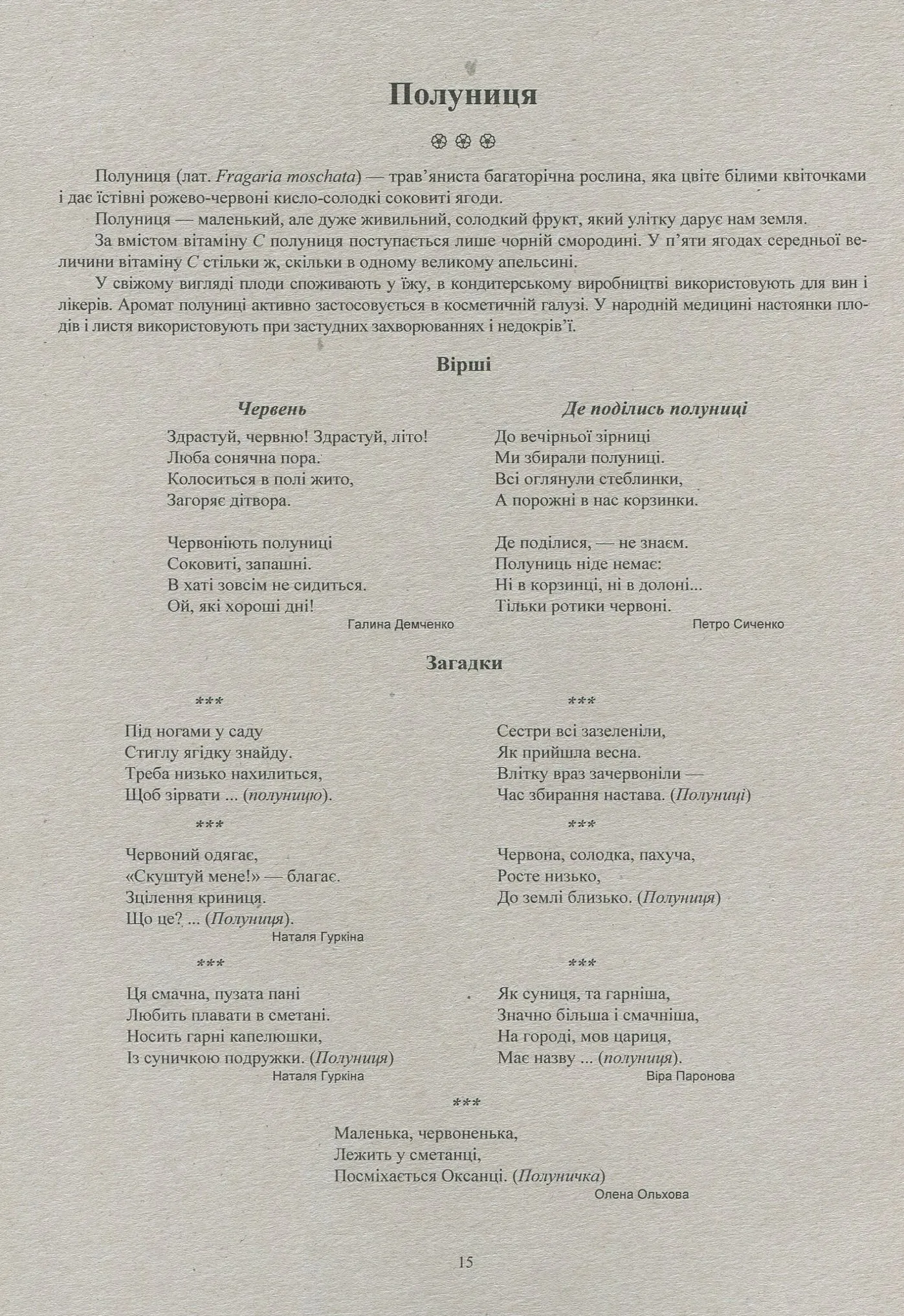 Посібник складається із 40 демонстраційних карток. На лицьовому боці картки містяться мальовані зображення овочів, фруктів та ягід. На зворотному боці подано добірку цікавих матеріалів: довідковий матеріал, вірші, загадки, скоромовки, прислів’я та приказки. Демонстраційні картки можна використовувати на заняттях у дитячому садку, на уроках навчання грамоти, української мови та природознавства в початковій школі. Для вихователів дитячих садків, вихователів груп продовженого дня, учителів початкових класів та недільних шкіл, батьків.