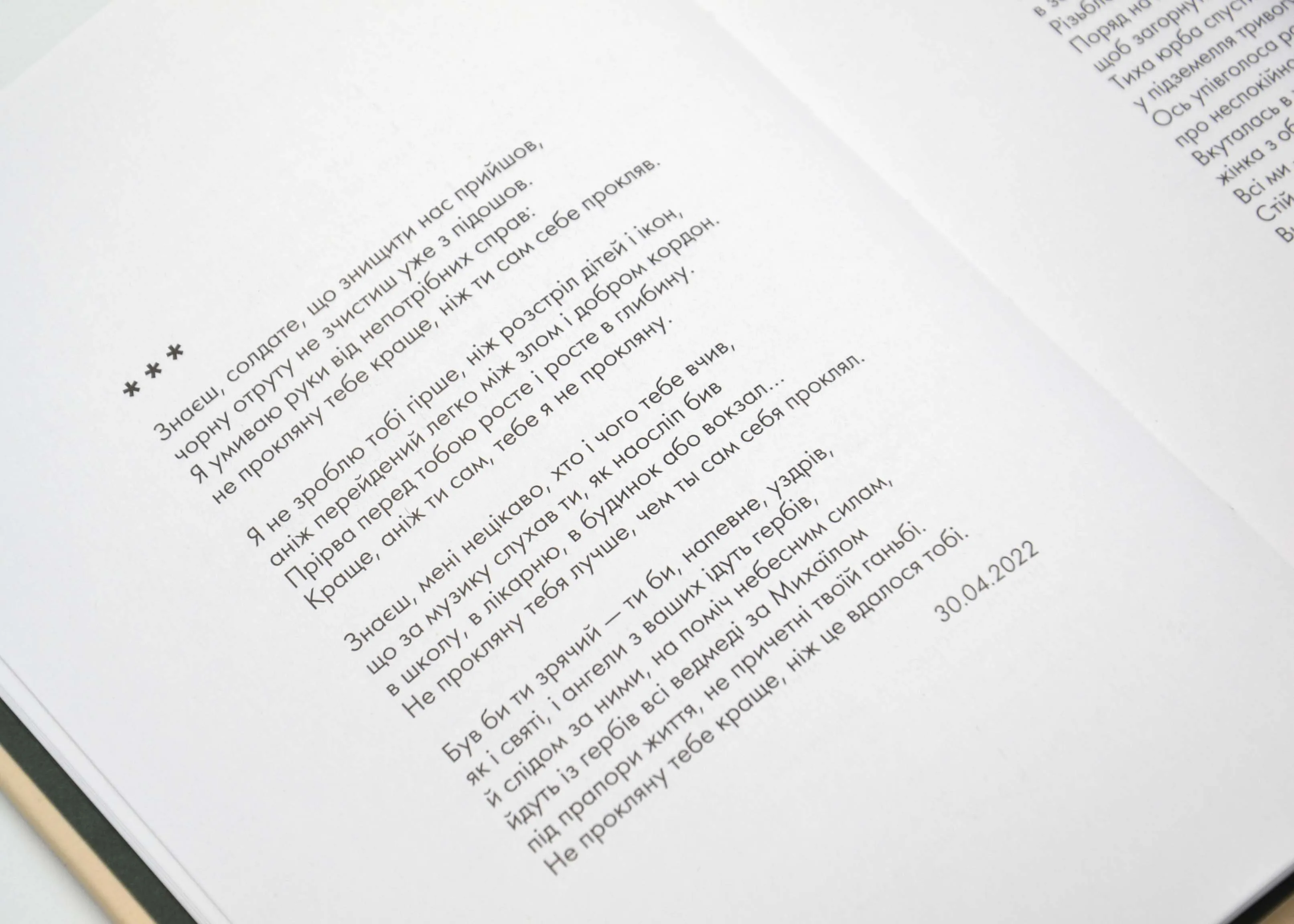 Більшість цих віршів написані після початку повномасштабного вторгнення. Далеко не в усіх текстах у центрі уваги війна, але так чи інакше її тінь лягає навіть на найлегші, оптимістичні поезії. Саме в небезпечні часи ми відчуваємо, що повітря сповнене незримих сил і течій — добрих і злих, прихильних до когось і байдужих. Ті чи інші сили й чуття прокидаються і в нас самих — про них, а разом з тим і про нас ця книжка та зібрані в ній історії.