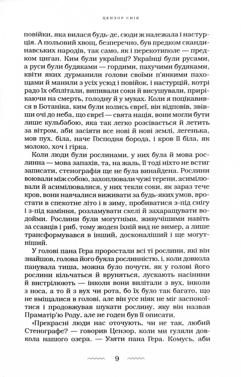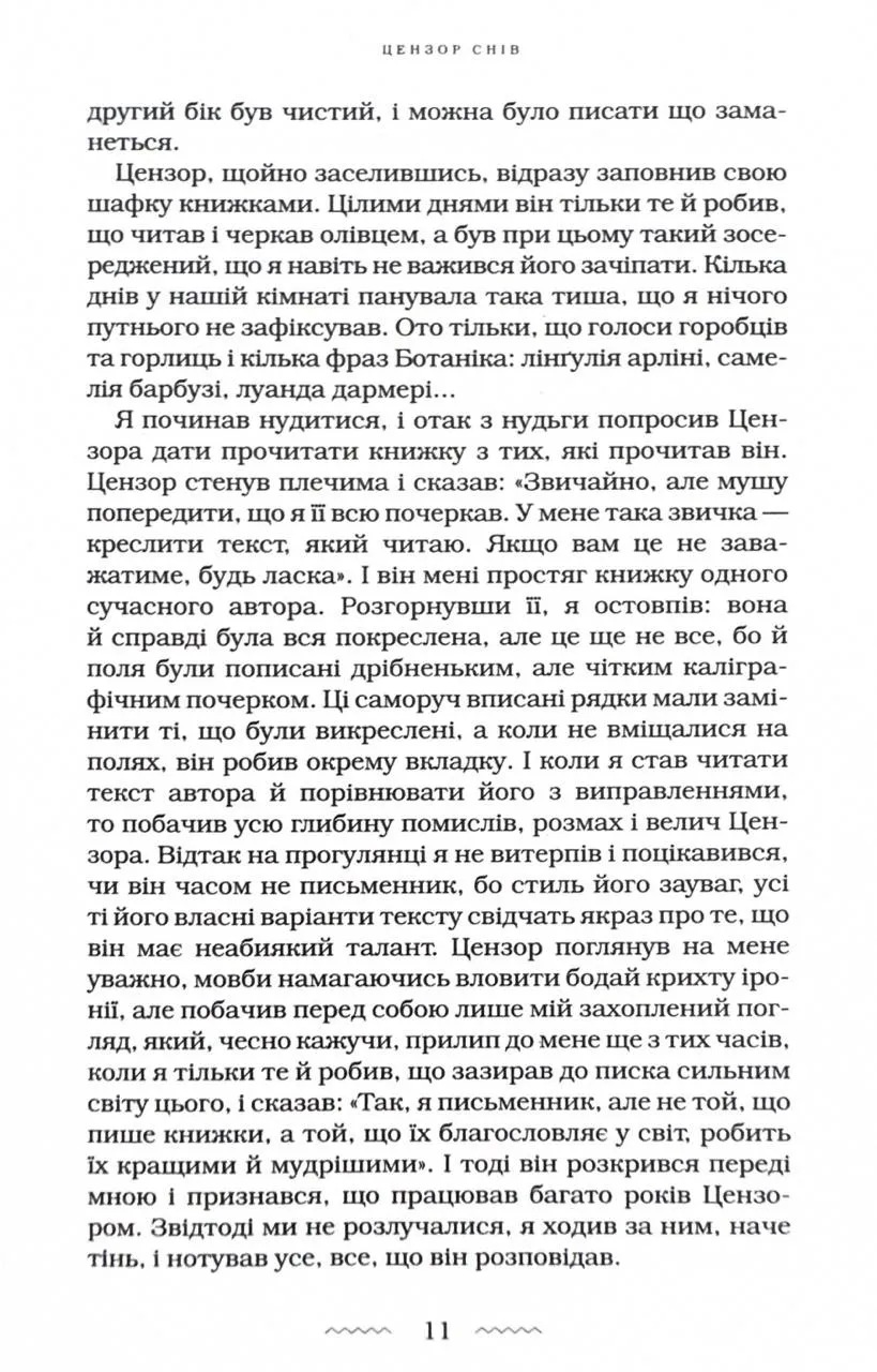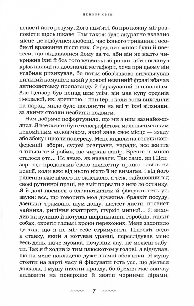 Роман «Цензор снів» — твір багатошаровий, інтригуючий і актуальний, де тривожний настрій змішується з гротеском, приголомшливі відкриття з метафоричними алюзіями, натуралістичні описи з гостросюжетними елементами.
