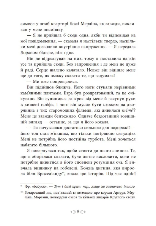 Зроду-віку легендарний і чарівний Броселіанд населяють древні духи, феї і богині. Та нині панувати в ньому прагнуть інші сили ? і сестри-відьми не допустять, щоб їхній рідний ліс перетворився на місце, звідки виходить зло. У розпал підготувань до протистояння, коли практично весь Париж евакуйовано й майже завершено будівництво муру, Вівіана виявилася обеззброєною: через прикрий випадок вона слабне і втрачає надприродні сили. А відьма ж без магії — не відьма! З важким серцем Вівіана залишає дім і вирушає в Гластонбері, де її можуть зцілити. Чи вдасться їй врятували світ від темної навали демонів, яка загрожує Франції і решті земель? І чи зможе Вівіана вибороти своє щастя — здобути серце цього самовпевненого магістра Ложі?