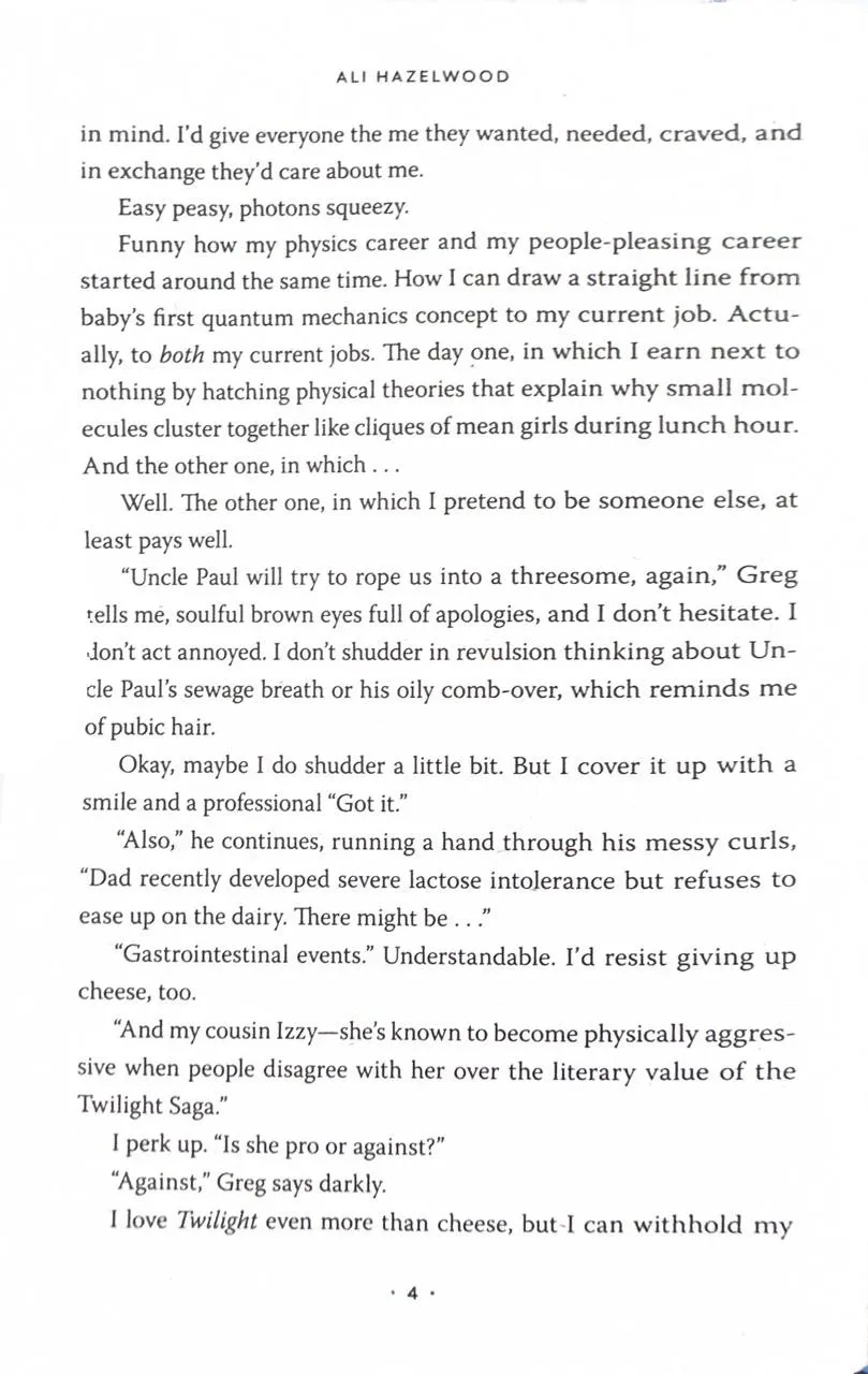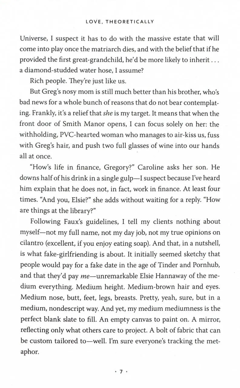 By other day, Elsie makes up for her non-existent paycheck by offering her services as a fake girlfriend, tapping into her expertly honed people-pleasing skills to embody whichever version of herself the client needs. Honestly, it's a pretty sweet gig - until her carefully constructed Elsie-verse comes crashing down. Because Jack Smith, the annoyingly attractive and arrogant older brother of her favourite client, turns out to be the cold-hearted experimental physicist who ruined her mentor's career and undermined the reputation of theorists everywhere. And he's the same Jack Smith who rules over the physics department at MIT, standing right between Elsie and her dream job. Elsie is prepared for an all-out war of scholarly sabotage but... those long, penetrating looks? Not having to be anything other than her true self when she's with him?