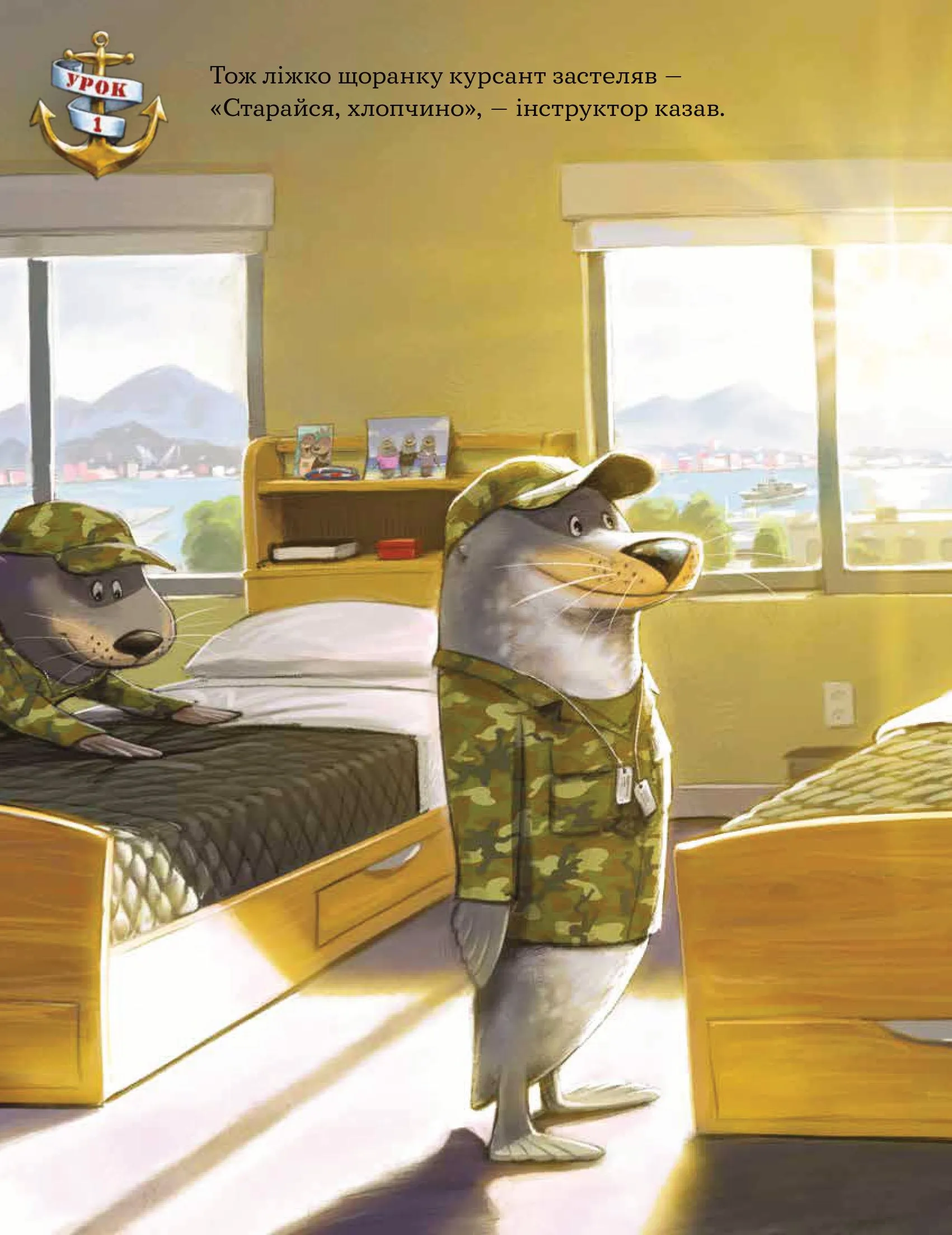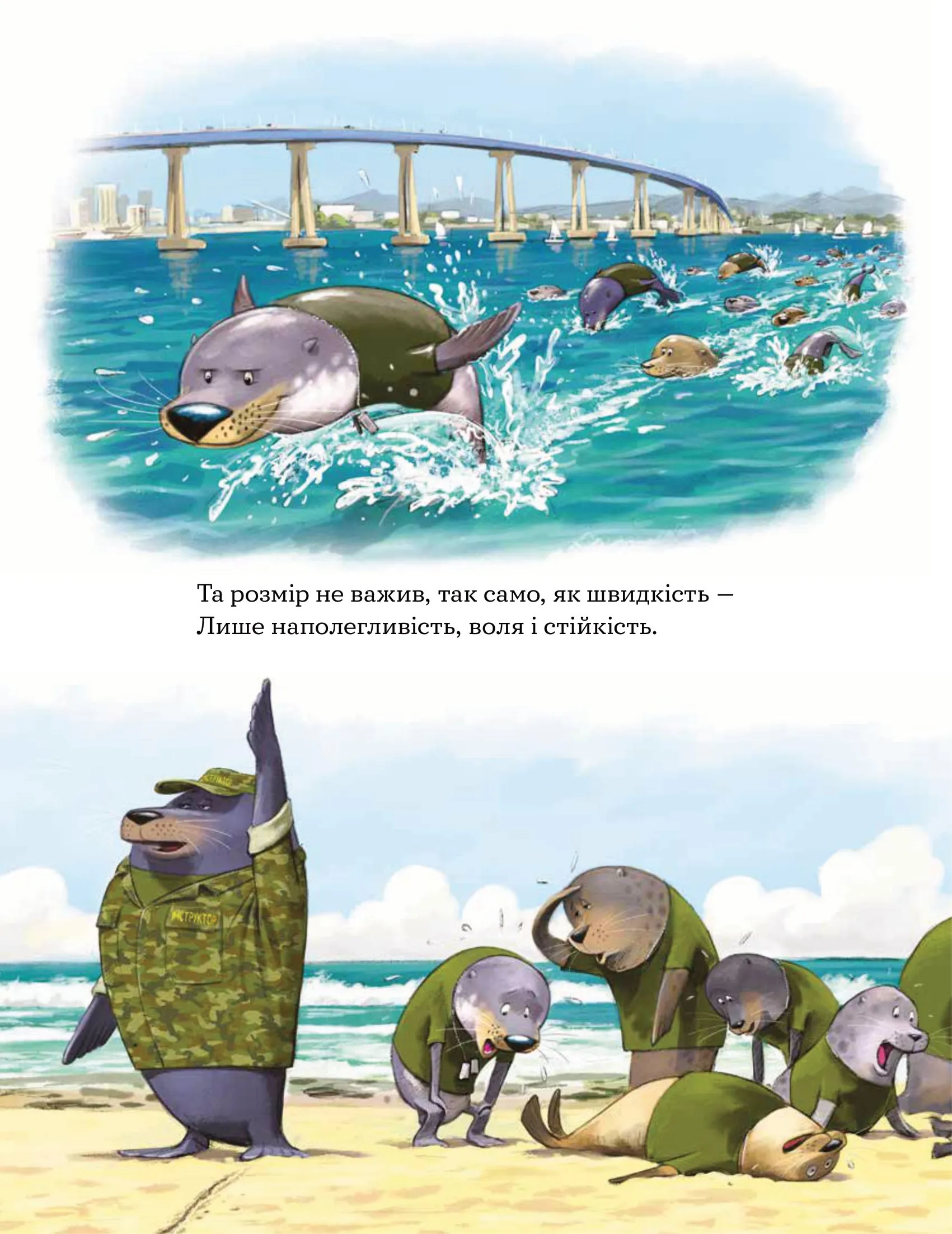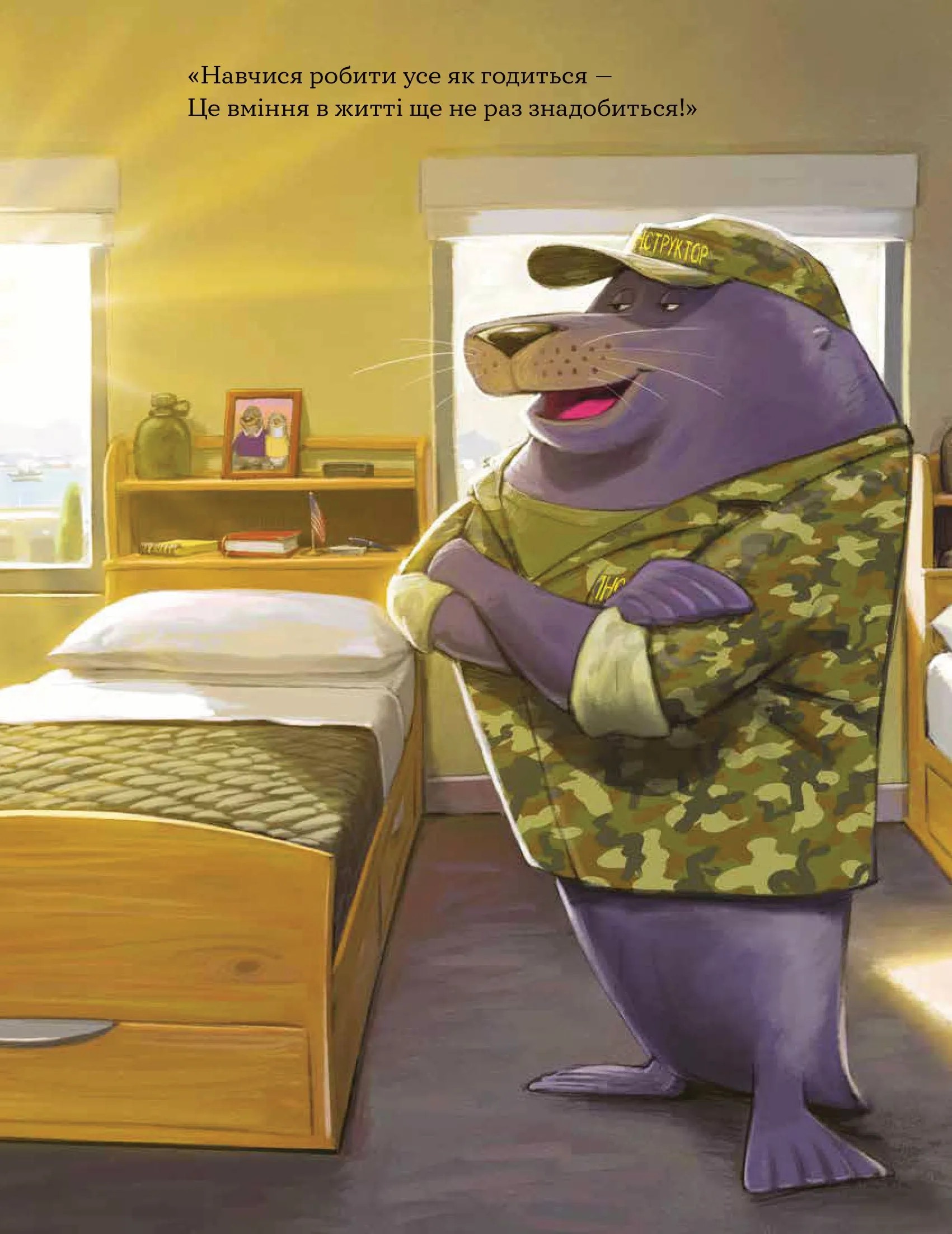 У таборі з навчання «морських котиків» тюлень Шкіпер і його працьовиті друзі дізнаються не лише про те, як скласти іспит з плавання чи вправно пірнати з корабля. Щоб стати справжнім «морським котиком», потрібно насамперед наполегливо працювати, вміти протистояти невдачам і ніколи не здаватися. Ці життєві правила неодмінно стануть у пригоді як дорослим, так і дітям. (І, звичайно, щоранку не забувайте застеляти ліжко!)