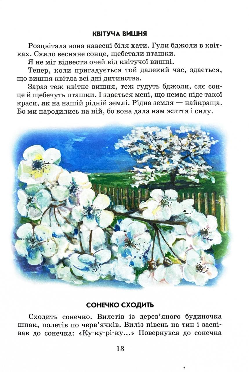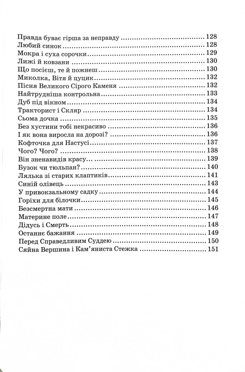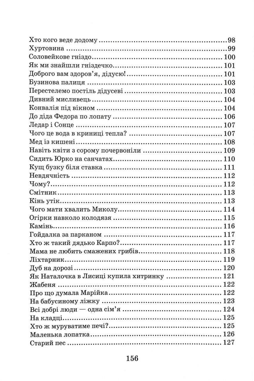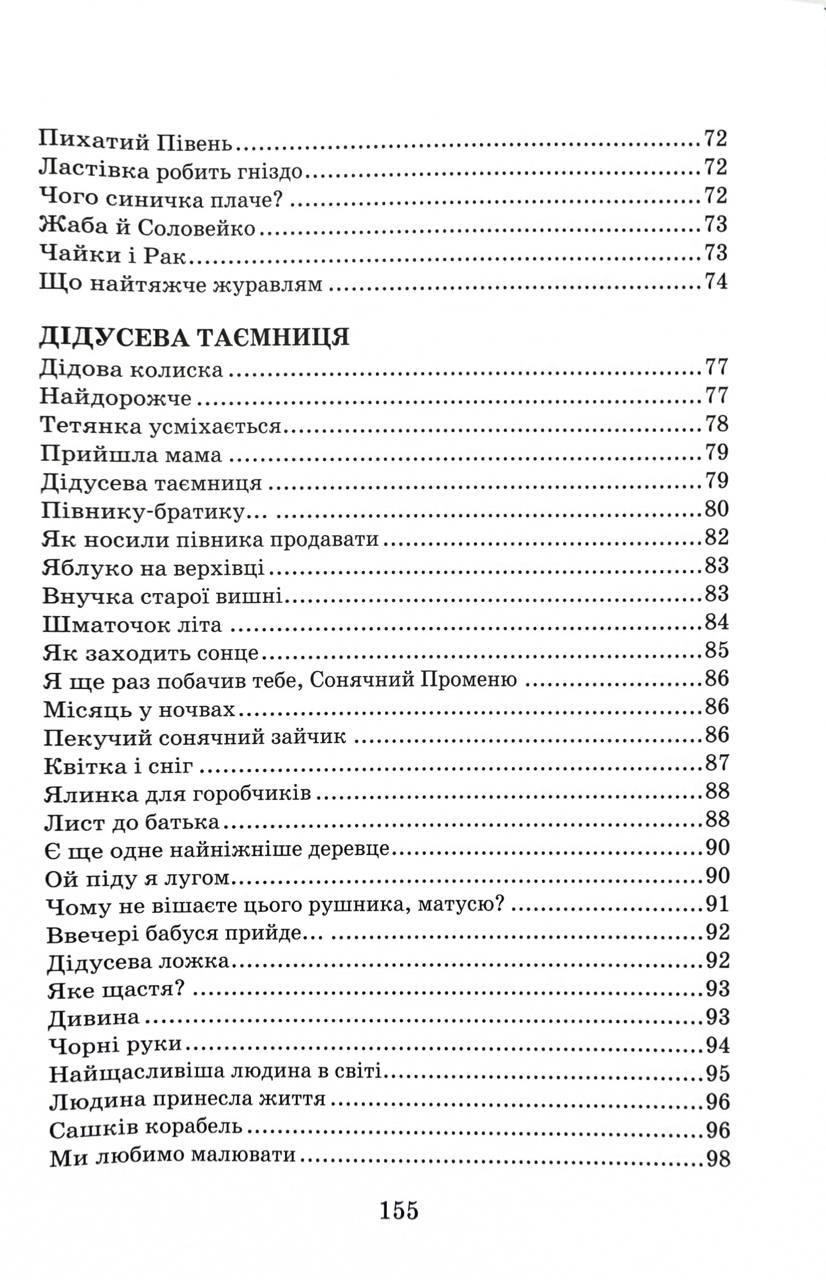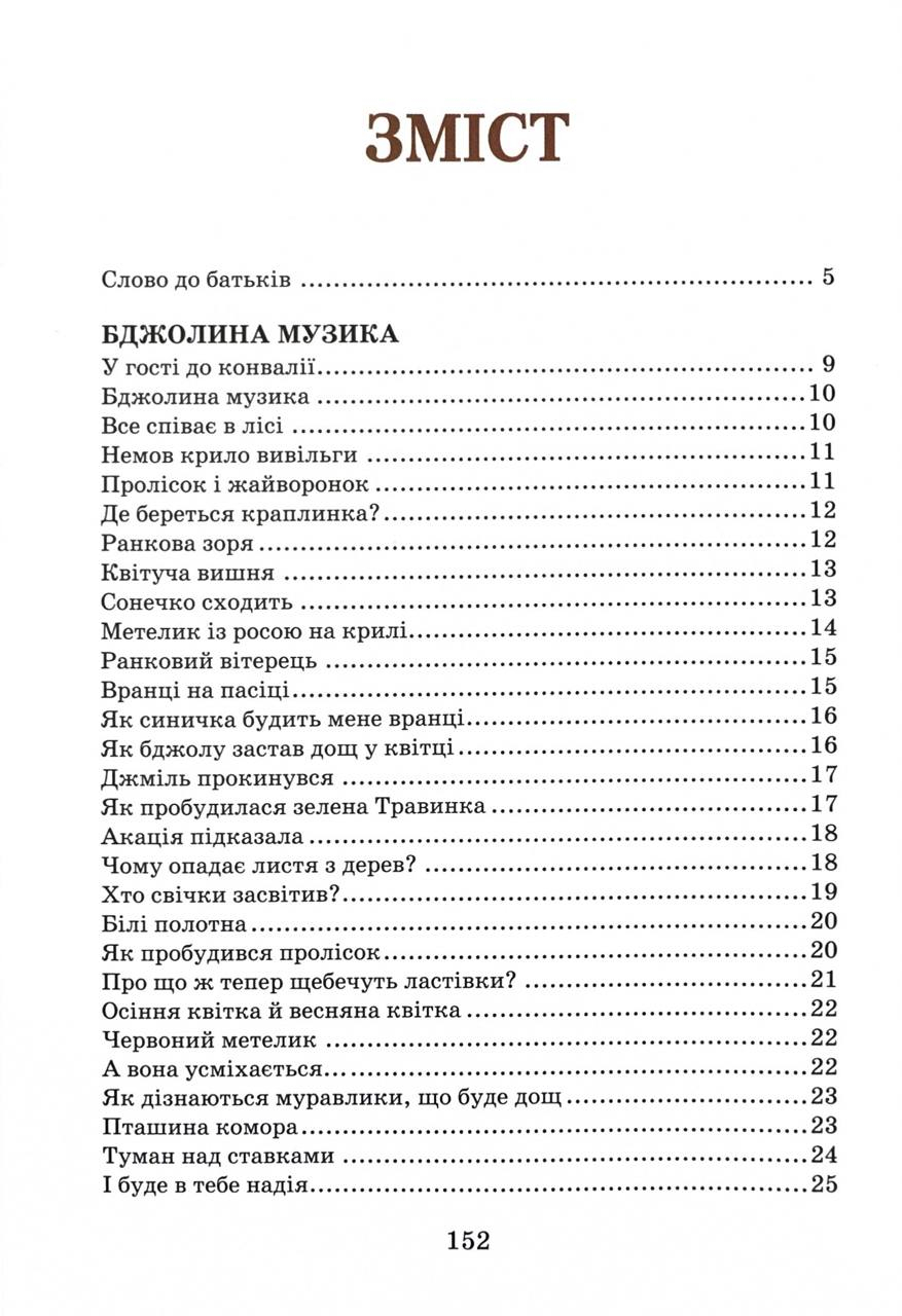 До нашої нової збірки включено не тільки твори, де дійовими особами є люди (розділ «Дідусева таємниця»). На її сторінках ви також зустрінетеся з олюдненими тваринами, рослинами і навіть природними явищами (розділ «Бджолина музика»). Все це розмаїття образів, життєвих ситуацій та художніх форм допоможе дитині відчути: все, що є у світі, все, що відбувається навкруги, — наповнене такими самими поняттями, що й життя людини.