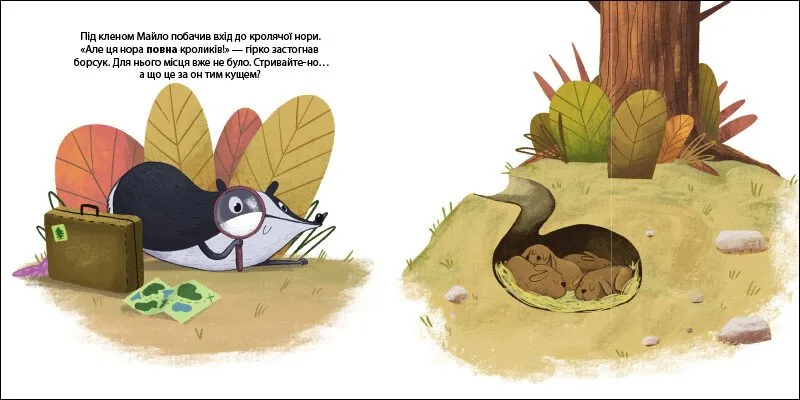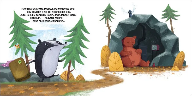 Зима на порозі, тож борсук Майло шукає собі дім. Такий, у якому він зможе спати аж до весни. Як ви думаєте, чи знайде Майло собі домівку? Його будинок буде великим чи маленьким? Чистим або брудним? Гортаючи сторінки цієї книги й відкриваючи віконця на кожному розвороті, маленькі читачі дізнаються, кого з лісових мешканців зустрів Майло, й разом із борсуком навчаться порівнювати довколишні предмети.