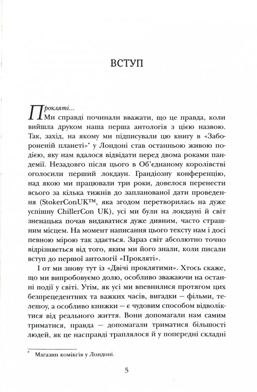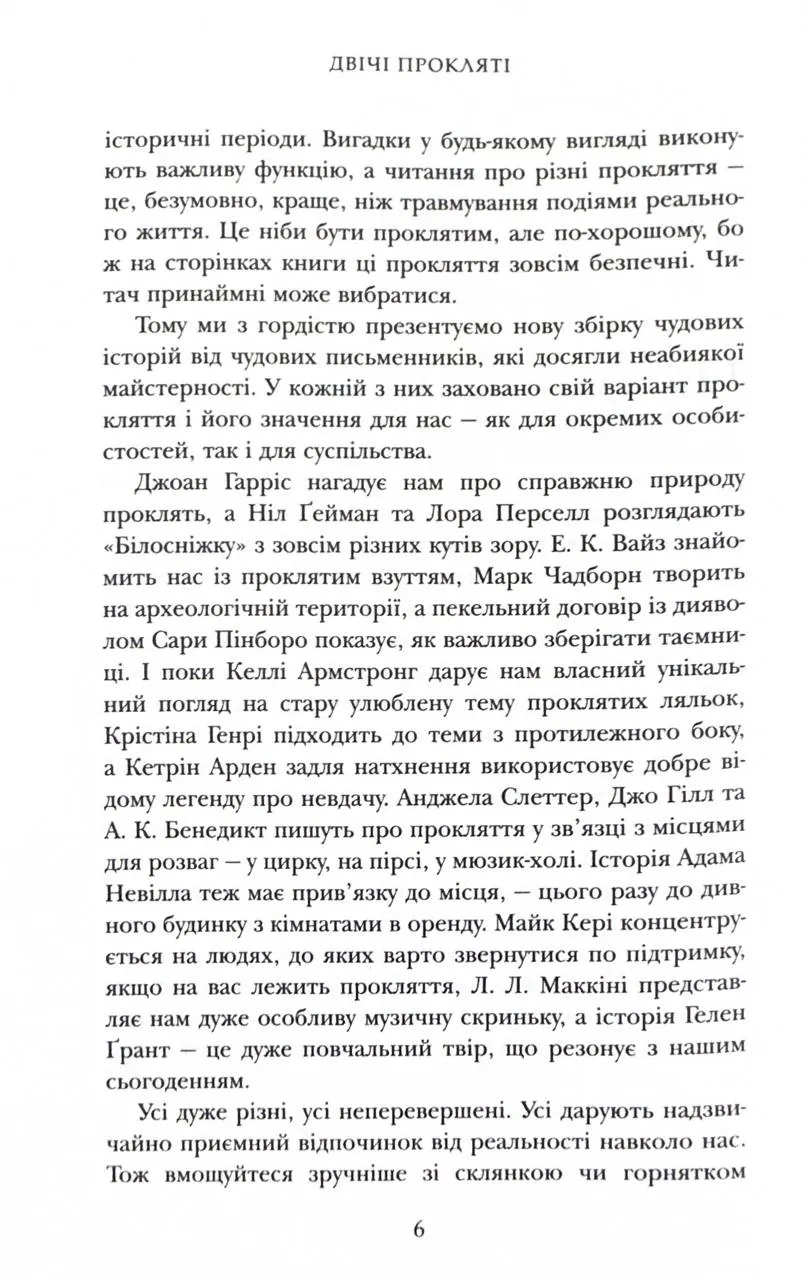 Збірка, що її ви тримаєте зараз у руках, просто просякнута прокляттями. Та ви в безпеці - когорта майстерних письменників ув'язнила магію на сторінках цієї книжки і вона здатна лише добряче полоскотати вам нерви та змусити замислитися над деякими речами у реальному житті.