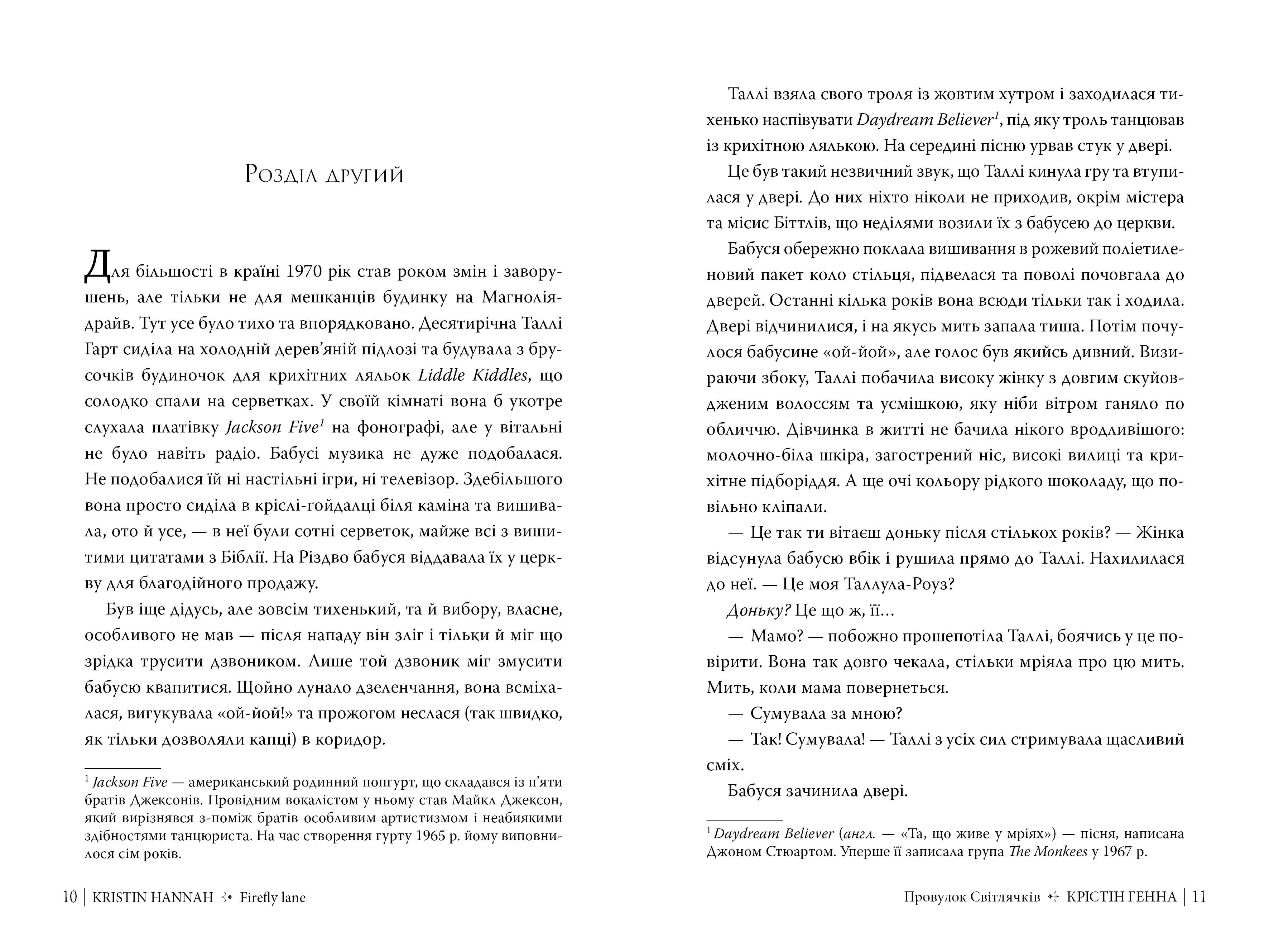 «Провулок Світлячків» — це більше ніж роман про дорослішання, це історія покоління жінок, які були одночасно благословенні та прокляті вибором. Це оповідь про обіцянки, таємниці та зради. І, зрештою, про єдину людину, яка по-справжньому знає вас і розуміє, що може завдати вам болю і може зцілити. «Провулок Світлячків» — це роман, який ви ніколи не забудете, який захочете передати своєму найліпшому другові.