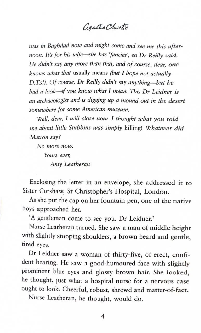 An archaeologist’s wife is murdered on the shores of the River Tigris in Iraq…It was clear to Amy Leatheran that something sinister was going on at the Hassanieh dig in Iraq; something associated with the presence of ‘Lovely Louise’, wife of celebrated archaeologist Dr Leidner.In a few days’ time Hercule Poirot was due to drop in at the excavation site. But with Louise suffering from terrifying hallucinations, and tension within the group becoming almost unbearable, Poirot might just be too late…