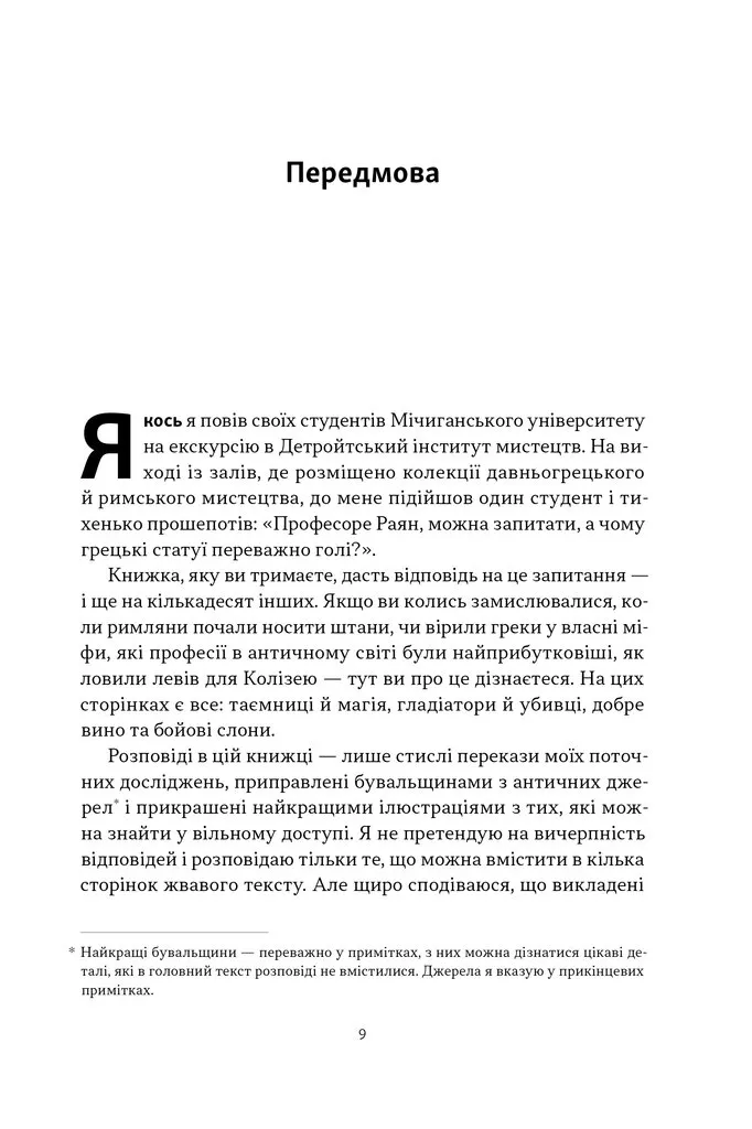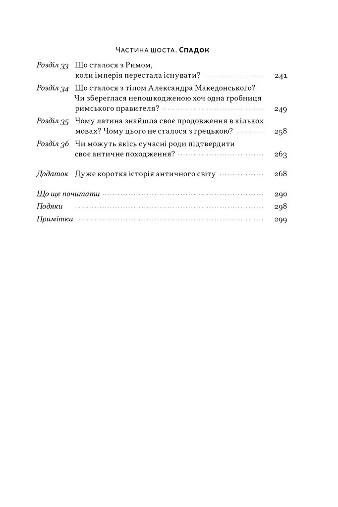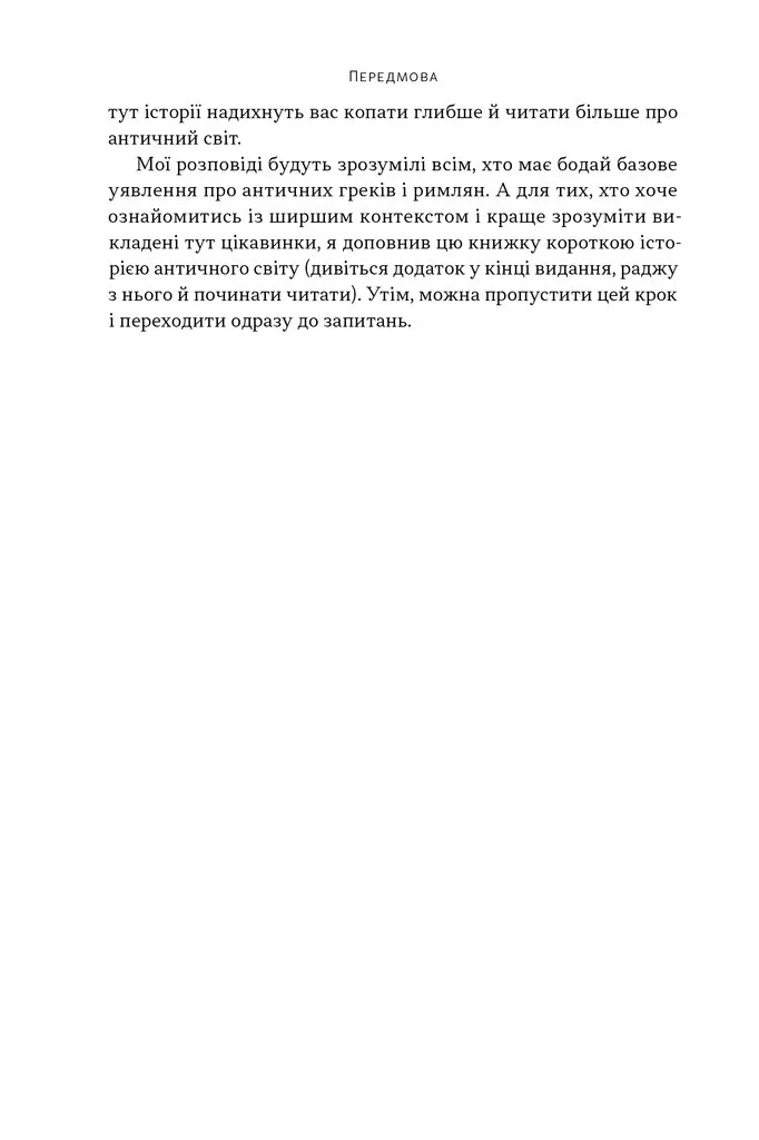 У цій книжці є оракули та шпигуни, Рим і Афіни, Спарта й Карфаген, Цезар і Нерон, язичники та християни, леви на арені й домашні улюбленці. Немає хіба занудства й намагання розповісти найвичерпнішу історію античності.
