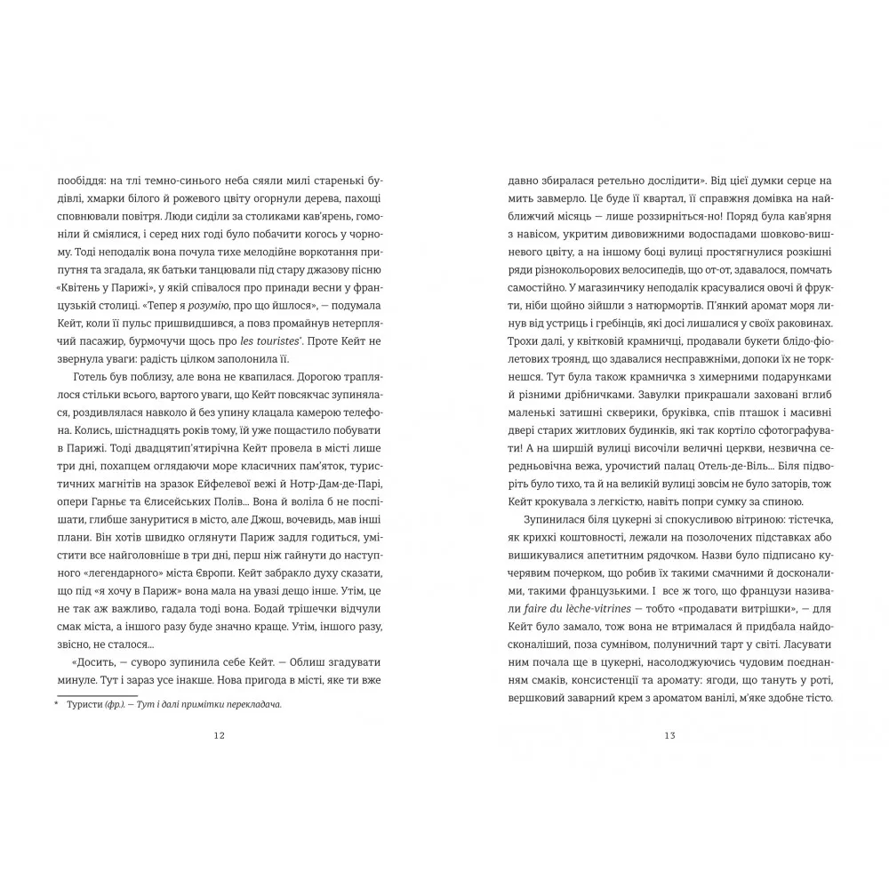 Для Ґабі Пікабеа й Кейт Еванс любов до кулінарії є лише приводом, щоб провести чотири тижні в паризькій кулінарній школі Сільві Морел. Кейт переживає розлучення та зраду колишнього чоловіка, а Ґабі, австралійська художниця, намагається подолати творчий блок. Життя Сільві теж не ідеальне: хтось переслідує її, залишаючи негативні відгуки й плітки в соціальних мережах та скарги до департаменту охорони здоров'я. Ці та інші інциденти загрожують бізнесу жінки. А симпатичний коханець, схоже, має проблеми із зобов'язаннями… На щастя, у Сільві є доброзичливий, надійний сусід, який всіляко її підтримує та дає слушні поради. Три жінки в подорожі самопізнання, зцілення та надії на майбутнє… Як же перетнуться їхні шляхи? Ця історія наповнена ароматом смачної їжі, весняним Парижем, привабливими героями, зустрічами, що ведуть до солодких романів, дрібкою інтриги, любов’ю та гумором.