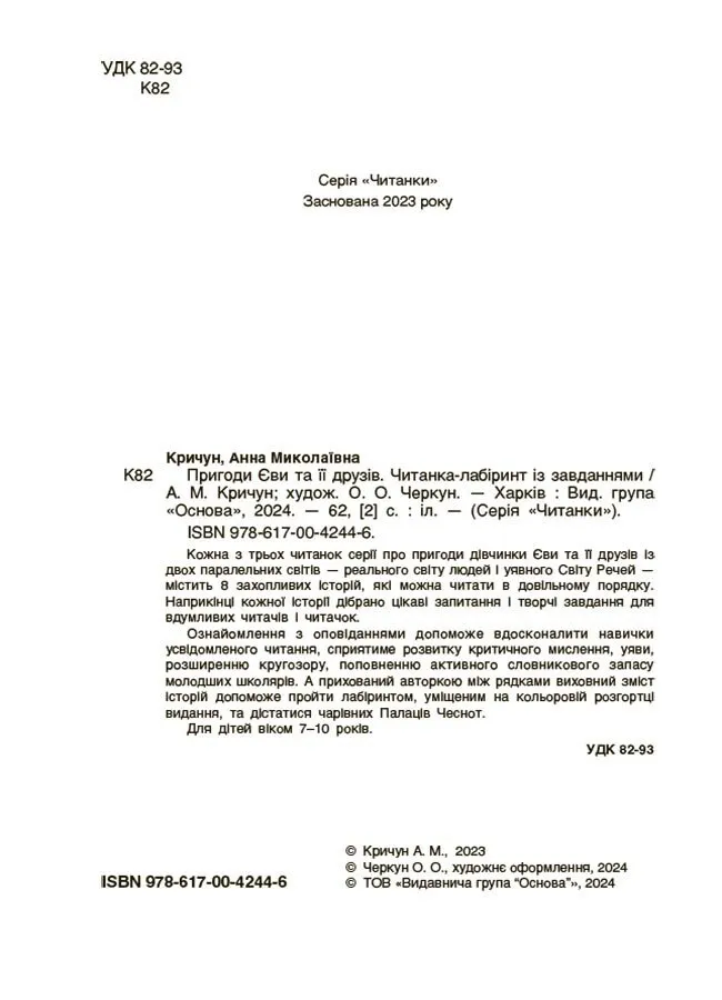 Пригоди Єви та її друзів. Читанка-лабіринт із завданнями