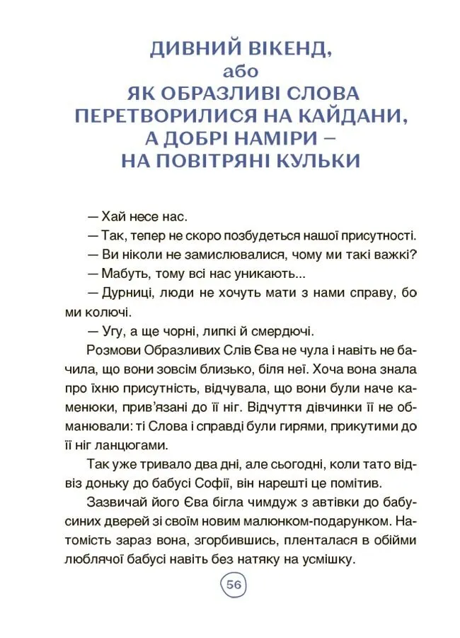 Серія книжок про пригоди Єви стане в пригоді дітям віком 7–10 років, щоб удосконалити навички усвідомленого читання; сприятиме розвитку критичного мислення, уяви, розширенню кругозору, поповненню активного словникового запасу. А прихований авторкою між рядками виховний зміст історій допоможе пройти лабіринтом, уміщеним на кольоровому розвороті видання, та дістатися чарівних Палаців Чеснот.