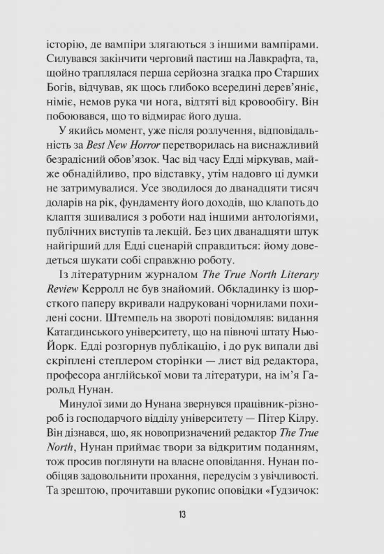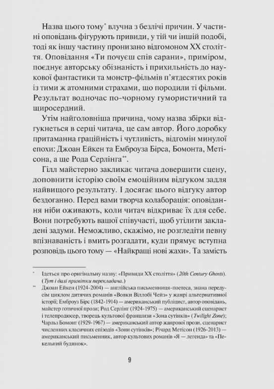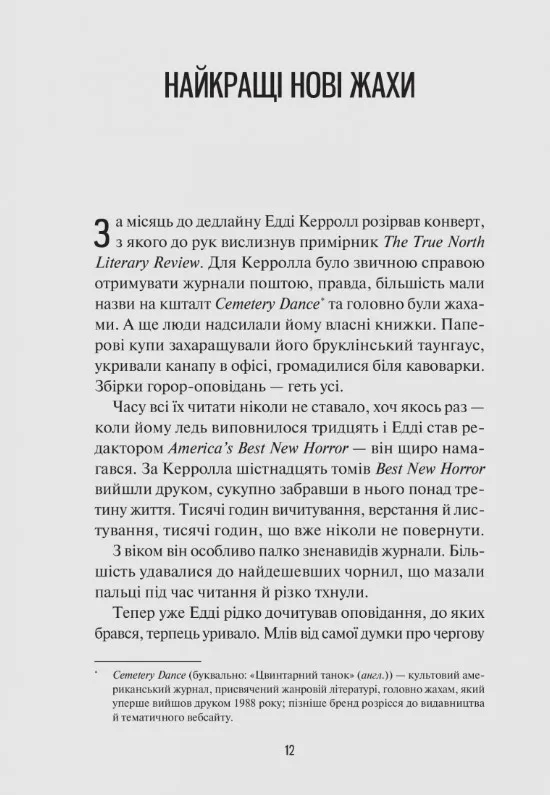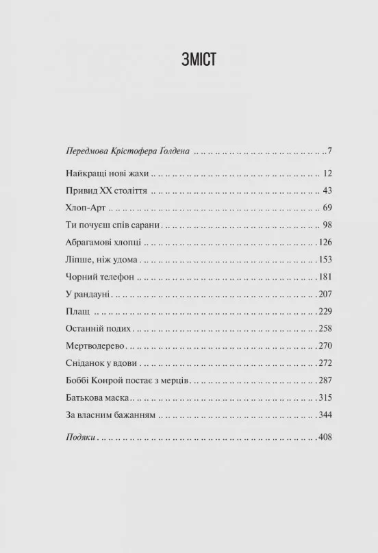 Перед вами захопливі оповідання, що поведуть стежкою жахів. Джона Фінні запроторили в підвал, де щоночі лунає телефон, а у слухавку промовляє жертва серійного вбивці... Імоджен Ґілкріст багато років тому померла в кінотеатрі «Роузбад», але деякі відвідувачі за четверть століття бачили її та спілкувалися з нею. Вона знає все про будь-який фільм і цілується, мов кінозірка... Артура Рота опановують великі ідеї, але йому складно знайти друзів, бо він єдиний надувний хлопчик у місті. Френсіс Кей — підліток, який став сараною. І першими вбив тих, кого по-справжньому любив. Кожному із цих самобутніх персонажів кортить розповісти вам власну історію.