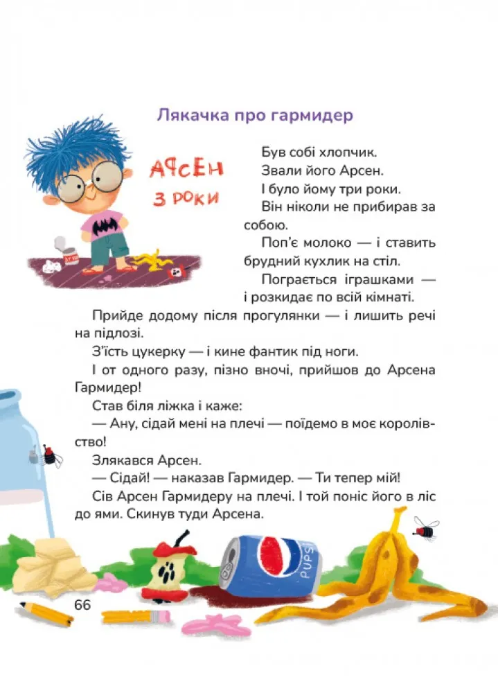 Якщо довго вередувати, можна отримати страшенні (аж до усміхачки!) наслідки. Наприклад, перетворитися на рибу чи восьмирука, зустрітися з велетенською булочкою і потрапити — куди? — в дітопарк. Можна навіть помалювати на шпалерах і пожити в яблуку, коли захочеться. Головне, не забути потім все-таки послухатися старших. А старшим — зрозуміти вередунів, бо всі дорослі (навіть бабусі!) колись були маленькі.