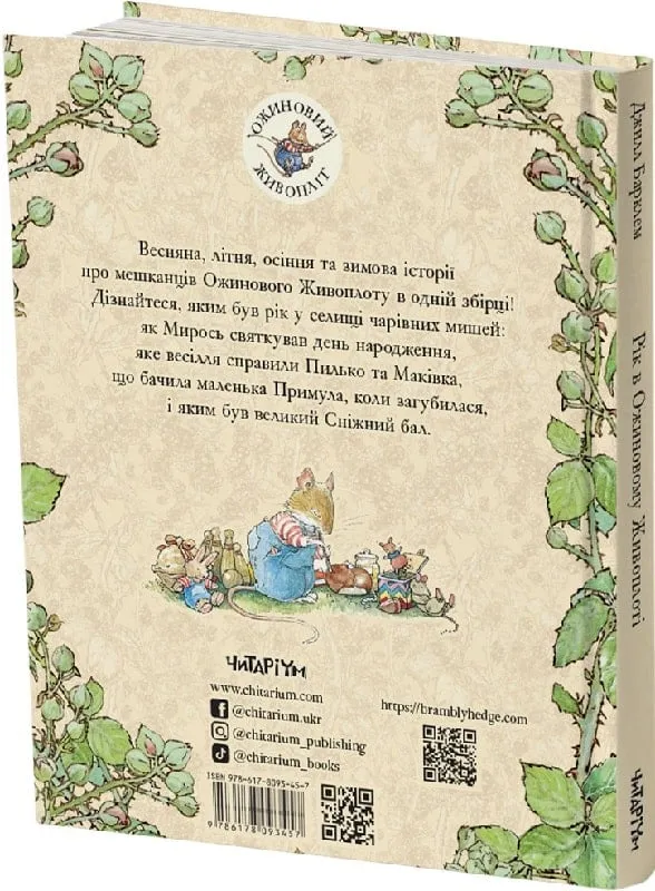 Весняна, літня, осіння та зимова історії про мешканців Ожинового Живоплоту в одній збірці! Дізнайтеся, яким був рік у селищі чарівних мишей: як Мирось святкував день народження, яке весілля справили Пилько та Маківка, що бачила маленька Примула, коли загубилася, і яким був великий Сніжний бал.