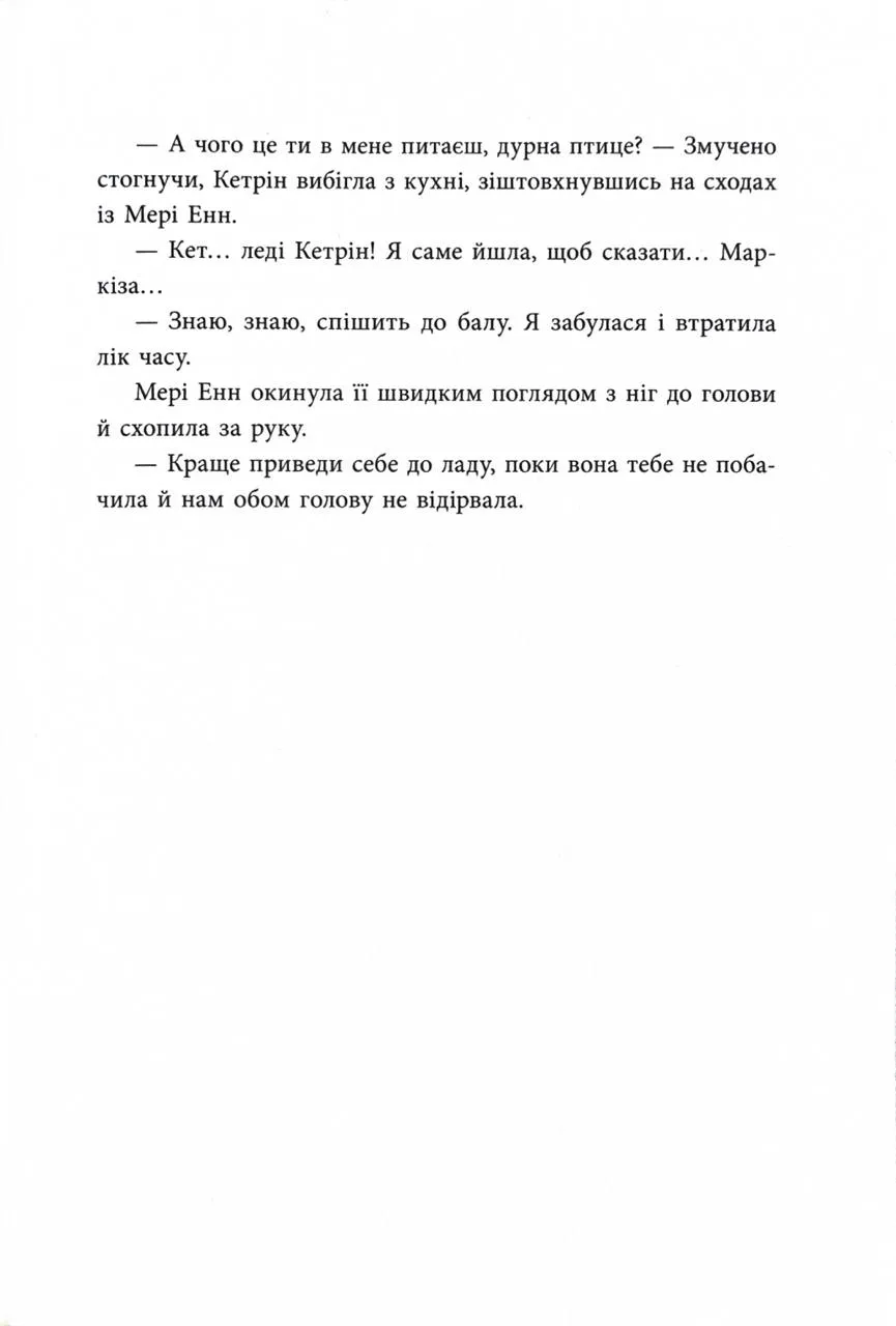 Чому безсердечна Королева рубає голови всім без розбору? Адже на початку ми бачимо Кет, леді Кетрін Пінкертон, дочку Маркіза, веселу й безтурботну. Вона мріє про власну пекарню на пару з Мері Енн і прагне кохання. Воно приходить, а разом із ним невідворотна доля, що визначає «комусь убивати, комусь бути вбитим, комусь царювати, комусь навісніти». Куди ж поділося ніжне, чуйне серце милої дівчини Кет?.. Аж раптом з'являється таємничий придворний блазень з очима кольору золота, і дівчина закохується. І починається рух від милої Кет до жорстокої королеви. Це неминуче: розбите серце, Гостромеч, смерть Жербельковта, безумство Капелюшника… Нам відомо ЩО має статися. Проте лишається запитання, ЧОМУ.