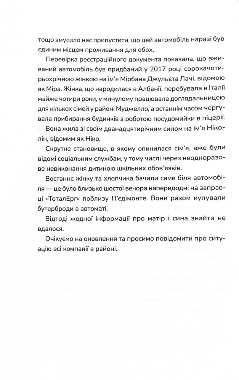Вісім місяців тому дванадцятирічний Ніко і його мати Міра, албанці за походженням, загадково зникли, покинувши автомобіль, у якому останнім часом мешкали. Нині хлопця - розгубленого, онімілого, проте ситого і доглянутого - знайшли мисливські собаки. Доля його матері невідома. Зазвичай суд не бере до уваги свідчень, отриманих під гіпнозом, проте, схоже, це єдиний спосіб розговорити хлопця. П’єтро Джербер береться за справу - і розуміє: часу, щоб урятувати дитину, небагато. Адже голос хлопчика, якого вже підозрюють у вбивстві власної матері, розповідає зовсім не його історію…