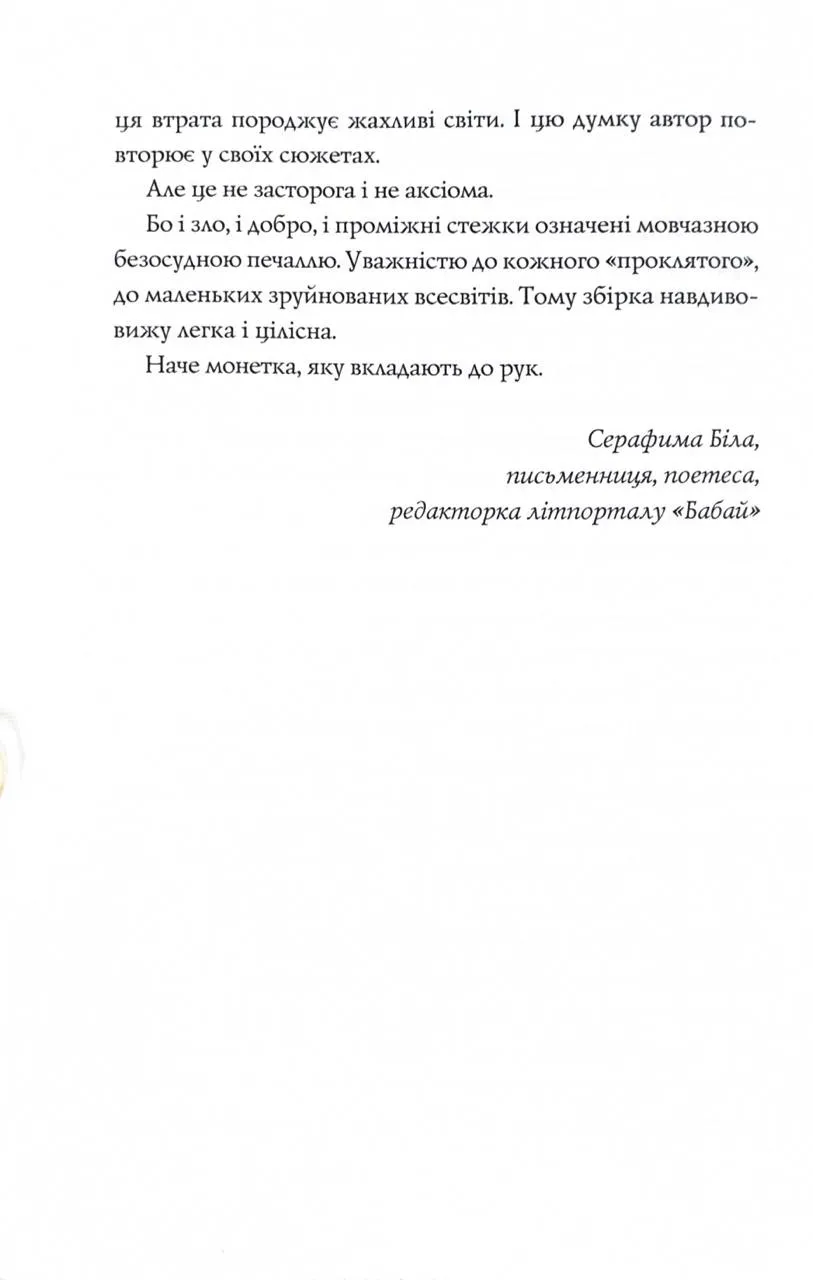 Та поки монета не впала, поки грає мелодія з-під землі, поки тривають експерименти з часом і доки не вдарив «град», є можливість прожити цю історію вибору і його прийняття. До збірки увійшли одинадцять оповідань, які поєднали в собі елементи соціальної фантастики, антиутопії, горору, притчеві й біблійні мотиви. Та, попри наявність містики у багатьох сюжетах, найстрашнішим злом для героїв виявляється реальність.