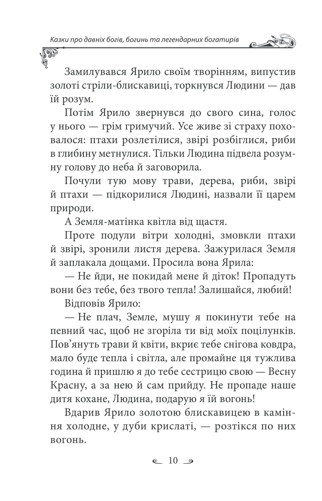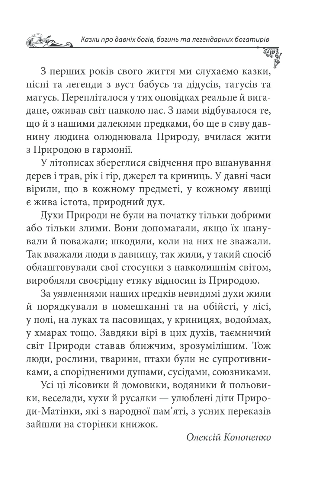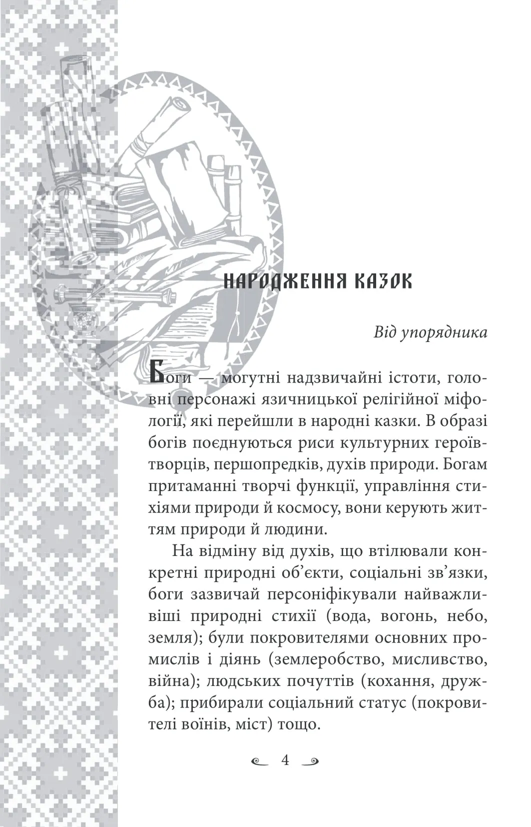 Наші предки-язичники вірили, що небеса населяють боги, на землі серед людей живуть герої, яких захищають небожителі, а весь світ навколо повен духів — добрих і злих. За їхніми уявленнями, невидимі духи правили не лише в людських оселях та на подвір'ї, але й у лісах, на полях, пасовищах, у водоймах і навіть у хмарах. Вони відчували таємничий світ природи ближче й краще розуміли його. Вважалося, що все навколо — дерева, струмки, каміння, кожна рослина — має свою душу, здатну думати й розмовляти, як люди. А з добрими духами завжди можна знайти спільну мову. На чолі всього стояли боги, від яких залежали і радість, і горе, добро і зло. Давні люди, не маючи пояснень для всього, що відбувається, створили уявлення про надприродні сили. Так із древніх міфів виросли казки про богів і богинь.