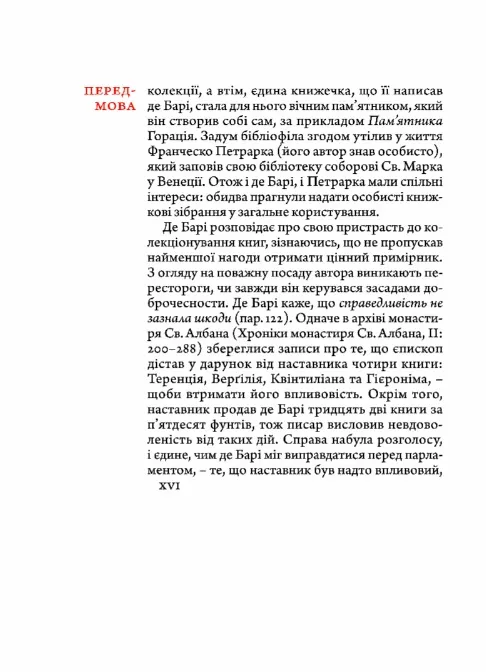 Цей трактат про любов до книг, написаний одним із найосвіченіших людей Середньовіччя Ричардом де Барі, вперше перекладений українською мовою. Автор, переплітаючи біблійні настанови, античну мудрість та середньовічні вчення, майстерно пояснює, чому любов і повага до книг є такою важливою. Його аргументи, незважаючи на минулі століття, залишаються актуальними й переконливими до сьогодні.