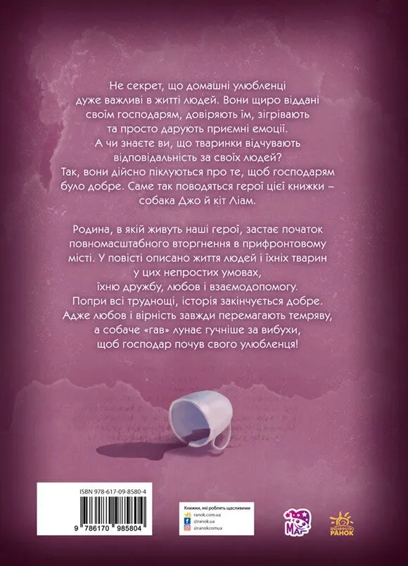 Родина, у якій живуть головні герої книги - пес Джо і кіт Ліам, застає початок повномасштабного вторгнення у прифронтовому місті. У книзі описане життя людей і домашніх улюбленців в цих непростих умовах, їхня дружба, любов та взаємодопомога. Попри всі труднощі, історія закінчується добре. Адже любов і вірність завжди перемагають темряву, а собачий «гав» лунає гучніше за вибухи, щоб господар почув свого улюбленця!
