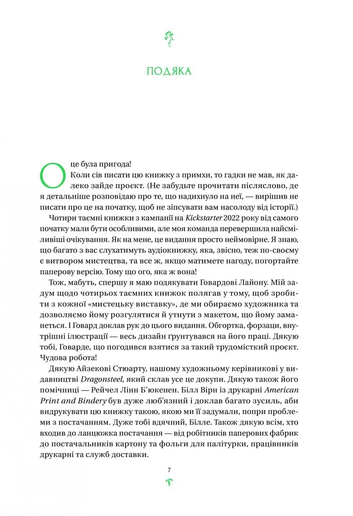 «Тресс зі Смарагдового моря» Брендона Сандерсона — це чарівна казка про неймовірні пригоди, дружбу та хоробрість. Цю захопливу історію зі всесвіту Космер автор розповідає, немов казку, яка не вимагає знання інших творів для розуміння сюжету. Колоритні персонажі й загадкові морські простори, якими подорожує Тресс, оживають не лише в тексті, а й у майстерних ілюстраціях Говарда Лайона, які роблять цю історію ще більш захопливою.