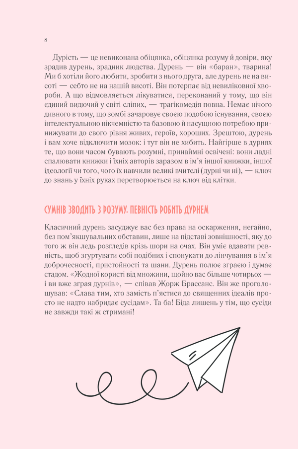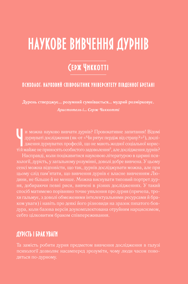 Щодня без винятку ми бачимо, чуємо й читаємо дурниці. Водночас усі їх роблять, думають, перетравлюють і говорять. Усі ми час від часу буваємо дурнями, які мимохіть верзуть дурниці без важких наслідків. Та поза щоденним фоновим шумом глупства доводиться мати справу з натовпом фахових, коронованих дурнів, дурнів із великої літери. І в цих дурнях, хоч де вони нас спіткають, на роботі чи вдома, немає нічого смішного. Тож чому їхня «популяція» збільшується, перетворюючи дурість із вади на еталон? Французький науковий журналіст Жан-Франсуа Марміон здійснив приголомшливе комплексне дослідження феномена людської тупості.