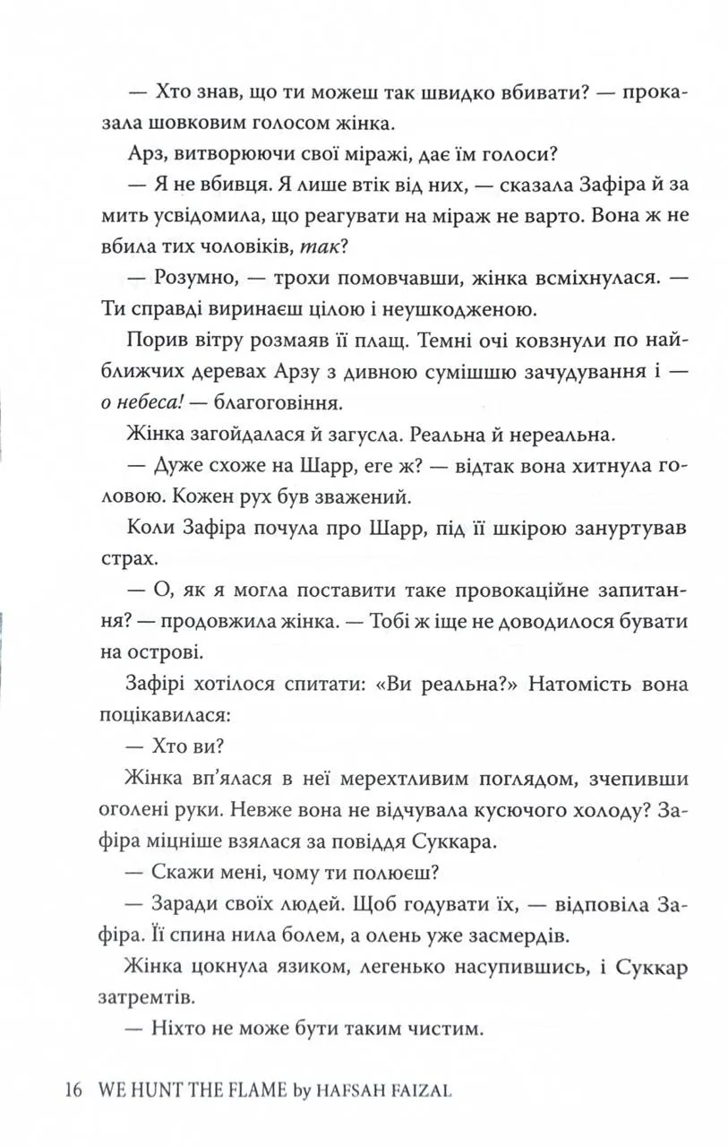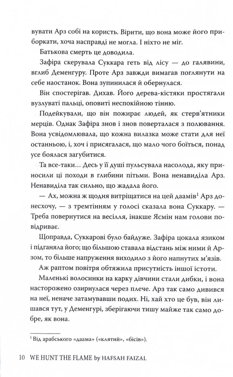Зафіра — Мисливець і, маскуючись під чоловіка, сміливо йде до проклятого лісу Арзу, щоб годувати своїх людей. Насір — Принц Смерті, що вбиває тих, кому стає дурості опиратися його деспотичному батькові, султану. Якщо Зафіру викриють як дівчину, всіма її досягненнями знехтують; якщо Насір виявить співчутливість, батько піддасть його найжорстокішим карам. І Зафіра, й Насір — легенди в королівстві Арабія, та не хочуть ними бути.