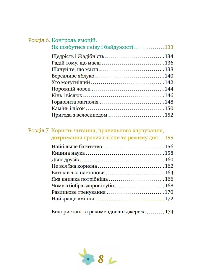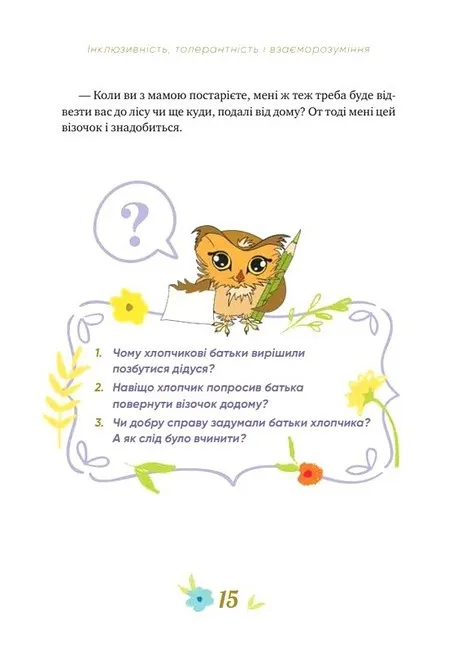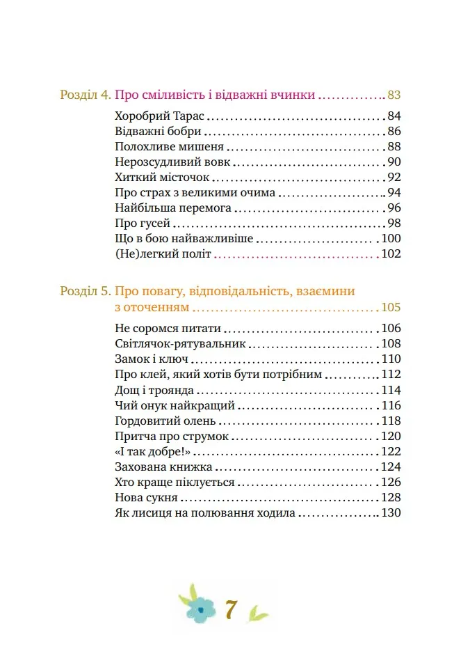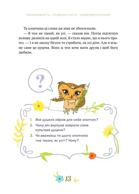 75 притч допоможуть дитині знайти відповіді на велику кількість запитань. Дадуть їй уявлення про толерантність, сприятимуть розумінню толерантності як цінності сучасної людини. Історії в книжці формуватимуть повагу і визнання до себе та інших людей. Через читання діти розвиватимуть навички терпимого ставлення до інших людей та вміння щось робити в команді, зростати чуйною і небайдужою. Також у книзі розкривається питання користі читання, правильного харчування й дотримання режиму дня.