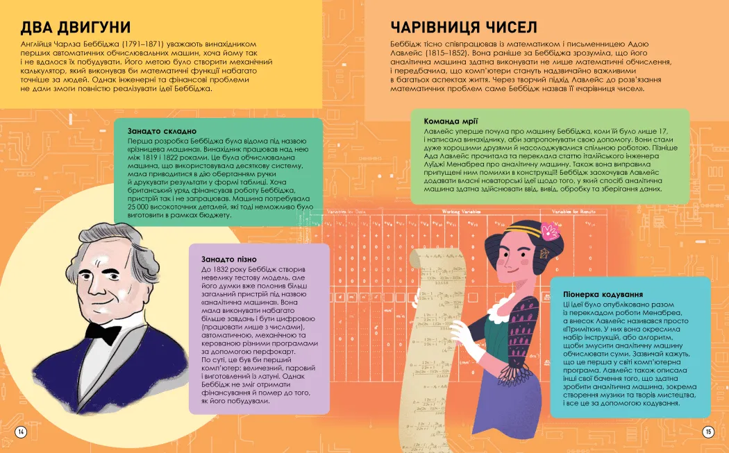 Книжка Лізи Ріган — це захоплива подорож у світ технологій та інформатики, що відкриває історію винаходів, які змінили наше життя, та розповідає про людей, що стояли за цими революційними відкриттями. Авторка, яка має понад 200 публікацій, пропонує легко зрозумілі пояснення основ інформатики, що підійдуть і дітям, і дорослим.
