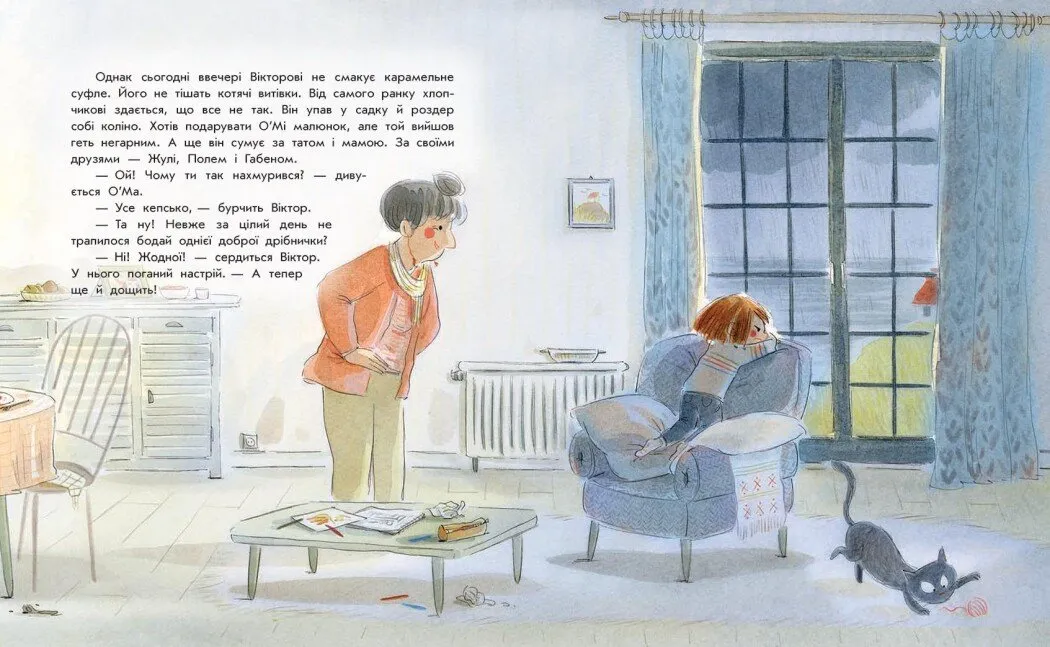 Книжка — захоплива історія для дітей, що допомагає відкрити красу навколишнього світу та навчитися сприймати його барви. Авторка, яка з дитинства мріяла писати, створила для юних читачів повчальну розповідь про маленького Віктора, який приїхав до бабусі й почав втрачати інтерес до всього навколо. Коли світ здається сірим і похмурим, бабуся О’Ма бере чарівний фотоапарат, щоб показати онукові, як дивитися глибше й знаходити кольори там, де їх не видно на перший погляд. Ця книга навчить дітей бачити яскраві моменти у простих речах та цінувати кожну мить життя.