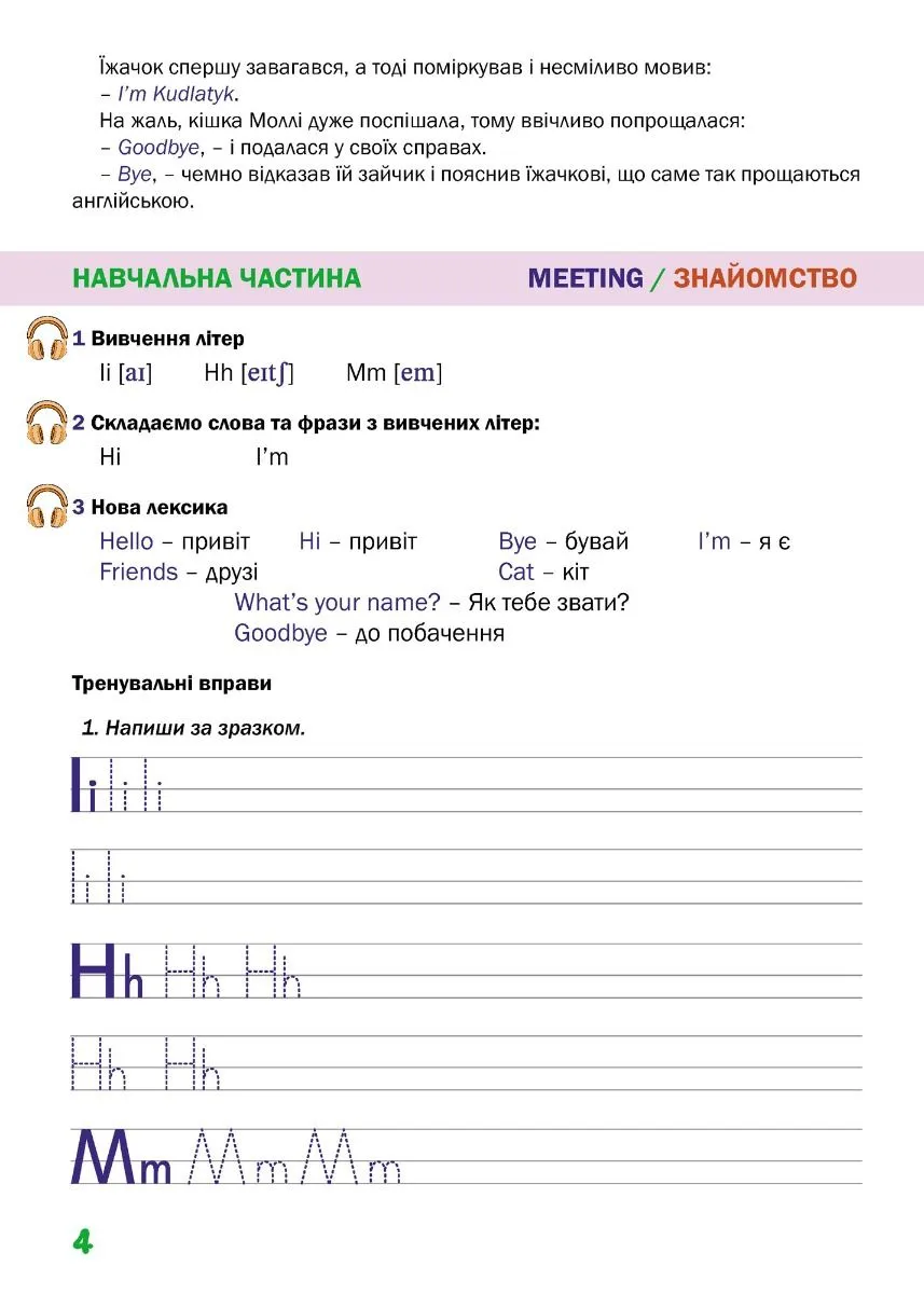 Посібник містить навчальну частину із вправами, що допомагають сформувати й розвинути навички говоріння, аудіювання, читання та письма. На прикладі спілкування між героями казки показано важливість використання англійської мови в реальних життєвих ситуаціях.
