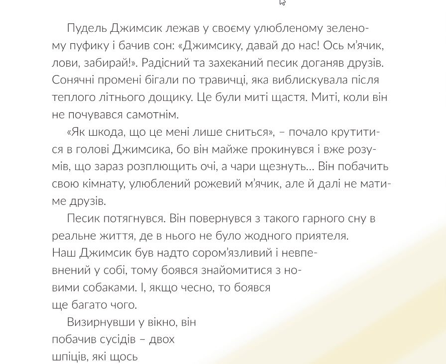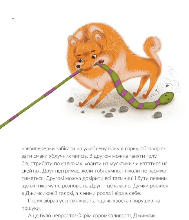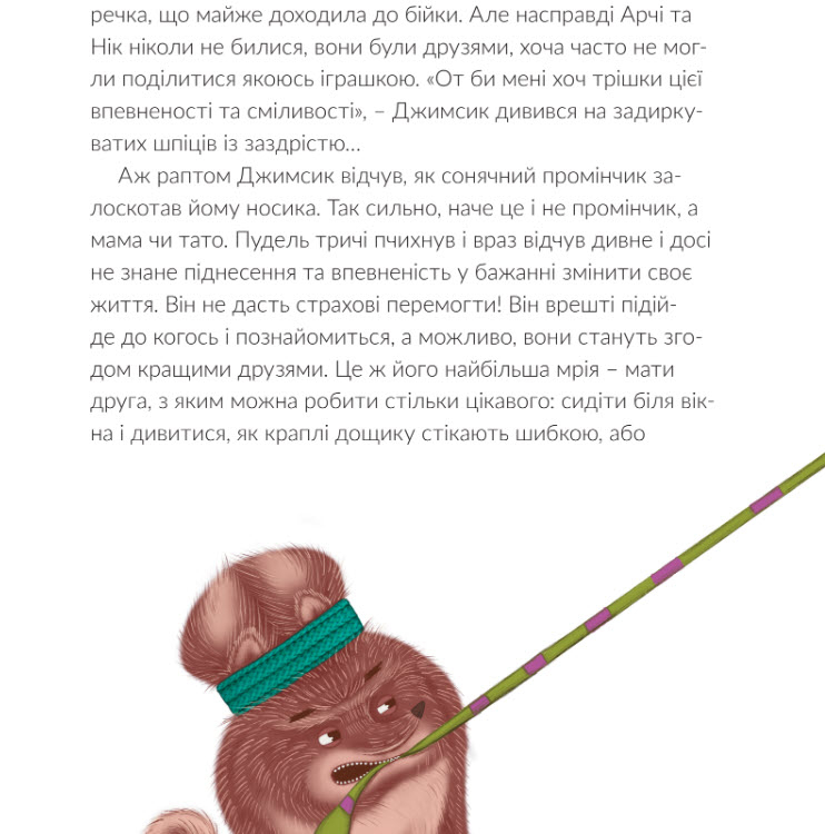 Джимсик – маленький пудель, який понад усе на світі мріє мати друга. Здавалося би, ну хіба це проблема? Але для нашого героя, який боїться усього на світі, познайомитися з іншими собаками – це справжнісінький подвиг! Та одного дня песик збере усю свою сміливість у хвіст і вирушить на пошуки! Чи вдасться йому подолативласні страхи? Яка несподівана зустріч чекає наприкінці його мандрів? Вирушайте у подорож разом з Дмимсиком і читайте зворушливу історію народження особливої дружби.