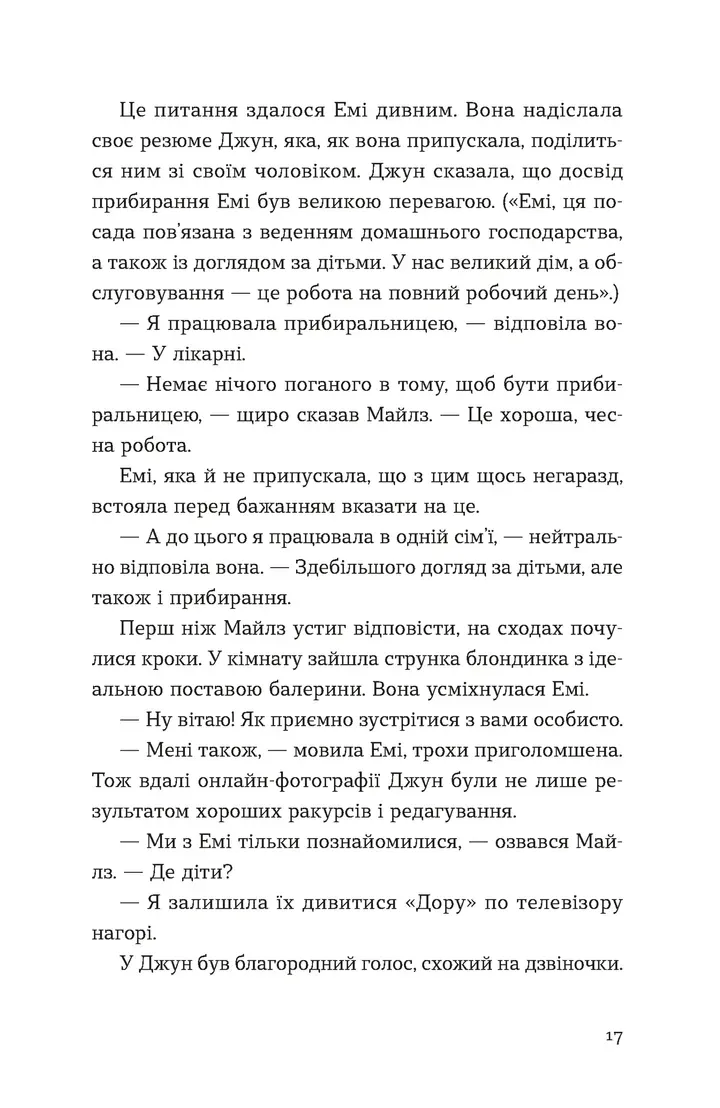 Емі мріяла почати нове життя подалі від великого міста та болісного минулого. Робота домробітниці у віддаленому будинку з виглядом на океан здавалася ідеальним шансом: мальовнича місцина, гостинна родина, тиша й спокій. Але за фасадом цієї ідилії ховаються моторошні таємниці.