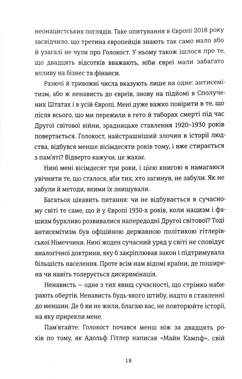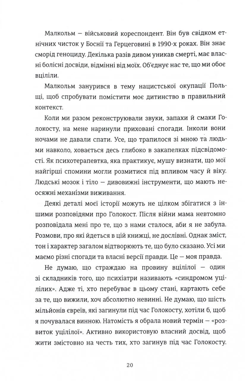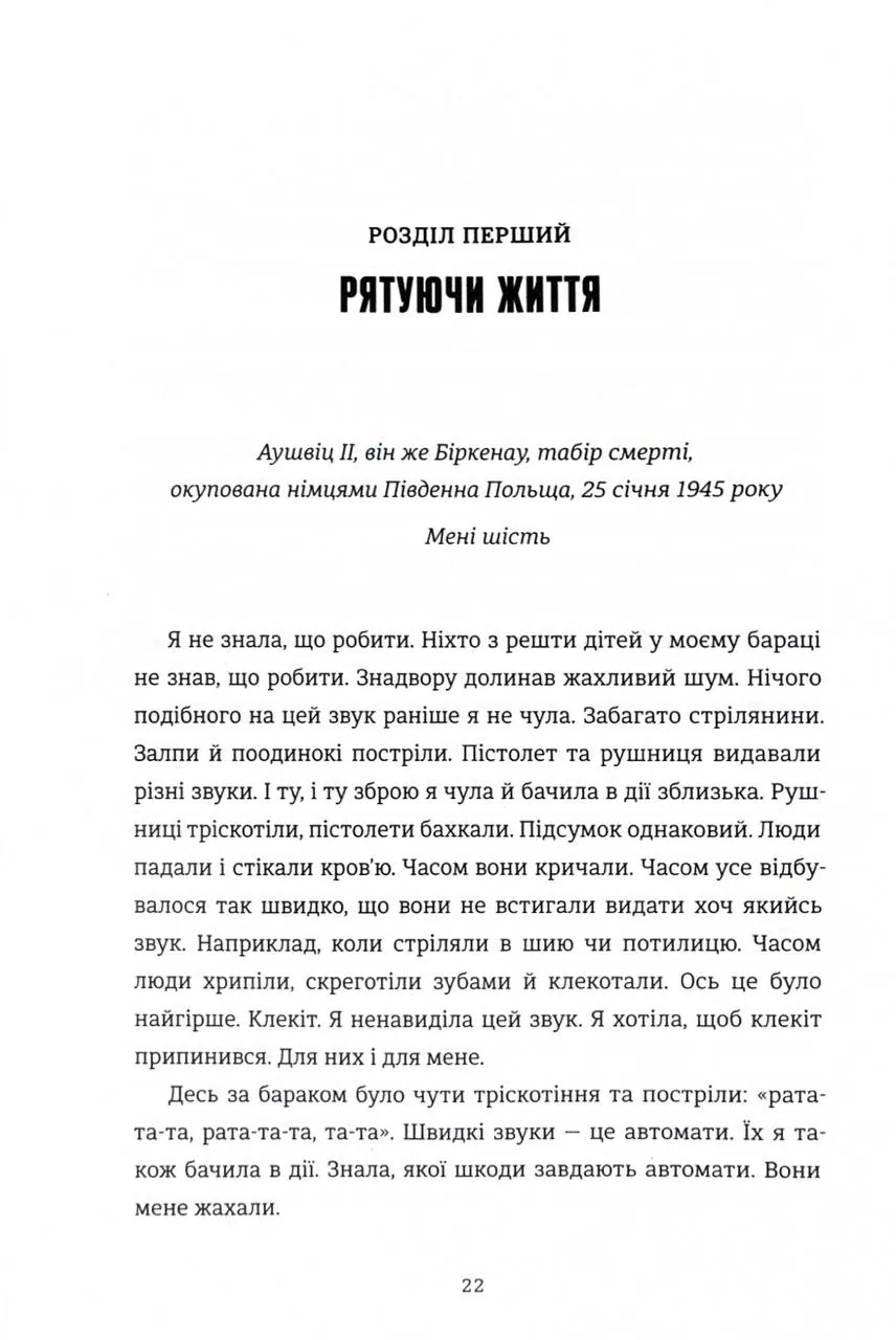 Ця книга — це свідчення Тови Фрідман, однієї з наймолодших в’язнів, які пережили Аушвіц. У співпраці з журналістом Малкольмом Брабантом вона ділиться важкими спогадами про жорстокість табору смерті, розповідає про трагічні компроміси, на які змушені були йти євреї, щоб зберегти життя, і відкриває сімейні таємниці, які проливають світло на темряву того часу. Це історія болю, втрат, незламної волі й джерела надії, яке допомогло її родині вистояти навіть у найжахливіших умовах.