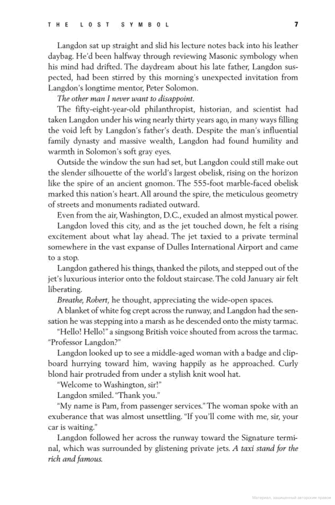 Це змушує його зануритися в захопливу гонитву крізь темні сторінки історії Вашингтона. Усе знайоме перетворюється на тіньовий, міфічний світ, де масонські таємниці та досі небачені одкровення, здається, ведуть його до однієї неможливої і неймовірної істини...