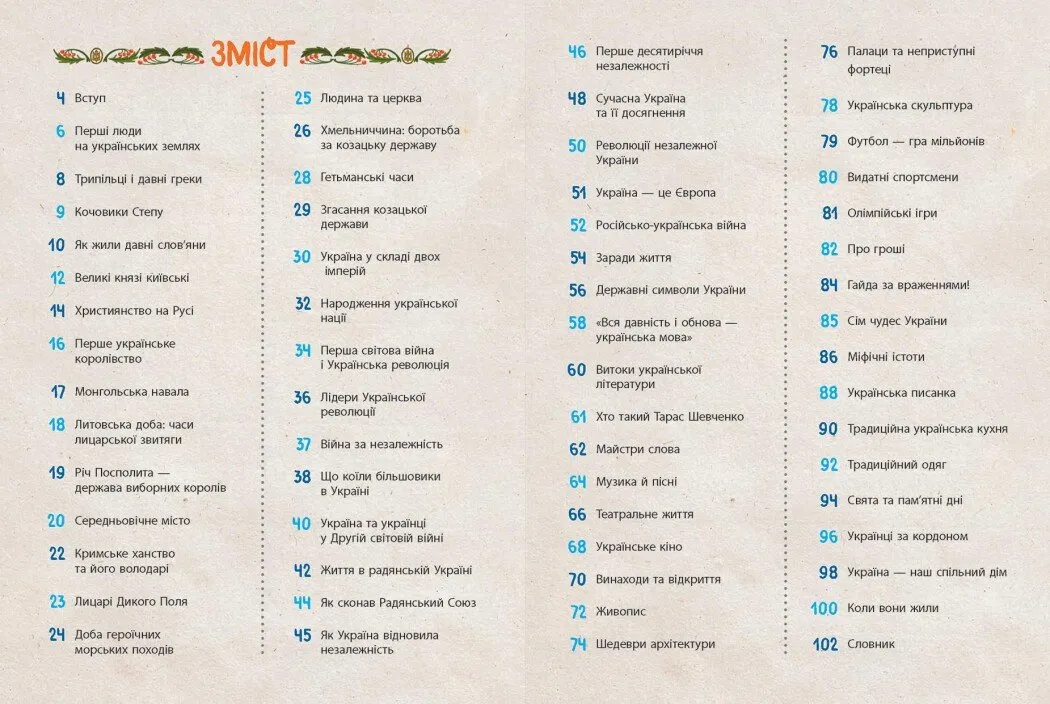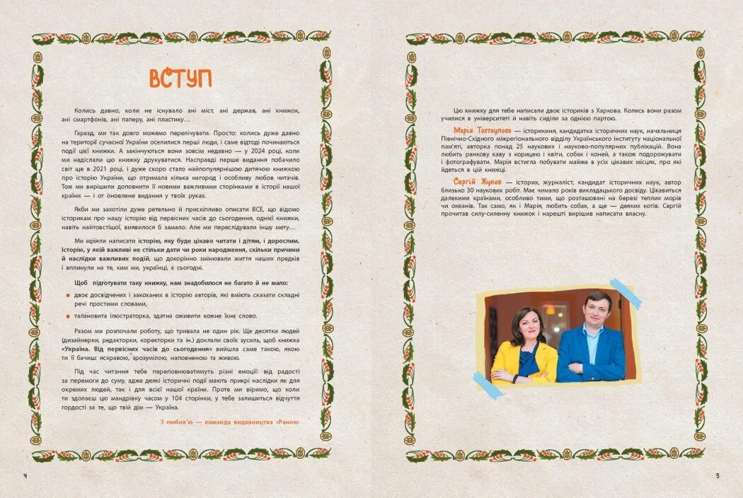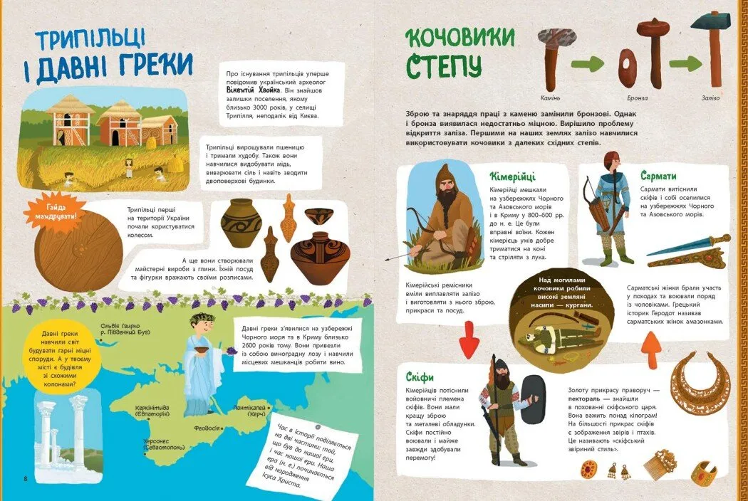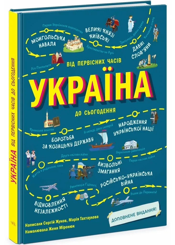 «Україна. Від первісних часів до сьогодення» — це оновлене видання бестселера від видавництва «Ранок», яке відкриває перед читачами захопливу подорож через історію України. У цьому путівнику розповідається про перших людей, які оселились на українських землях, про розквіт давніх слов'янських поселень, про славетних князів, героїчних козаків і великих постатей, що визначали розвиток країни до наших днів. Окрім історичних подій, книжка знайомить із ключовими місцями, культурною спадщиною та здобутками українців у різних галузях. Ця книга стане чудовим путівником для всіх, хто хоче більше дізнатися про багатий історичний шлях України.