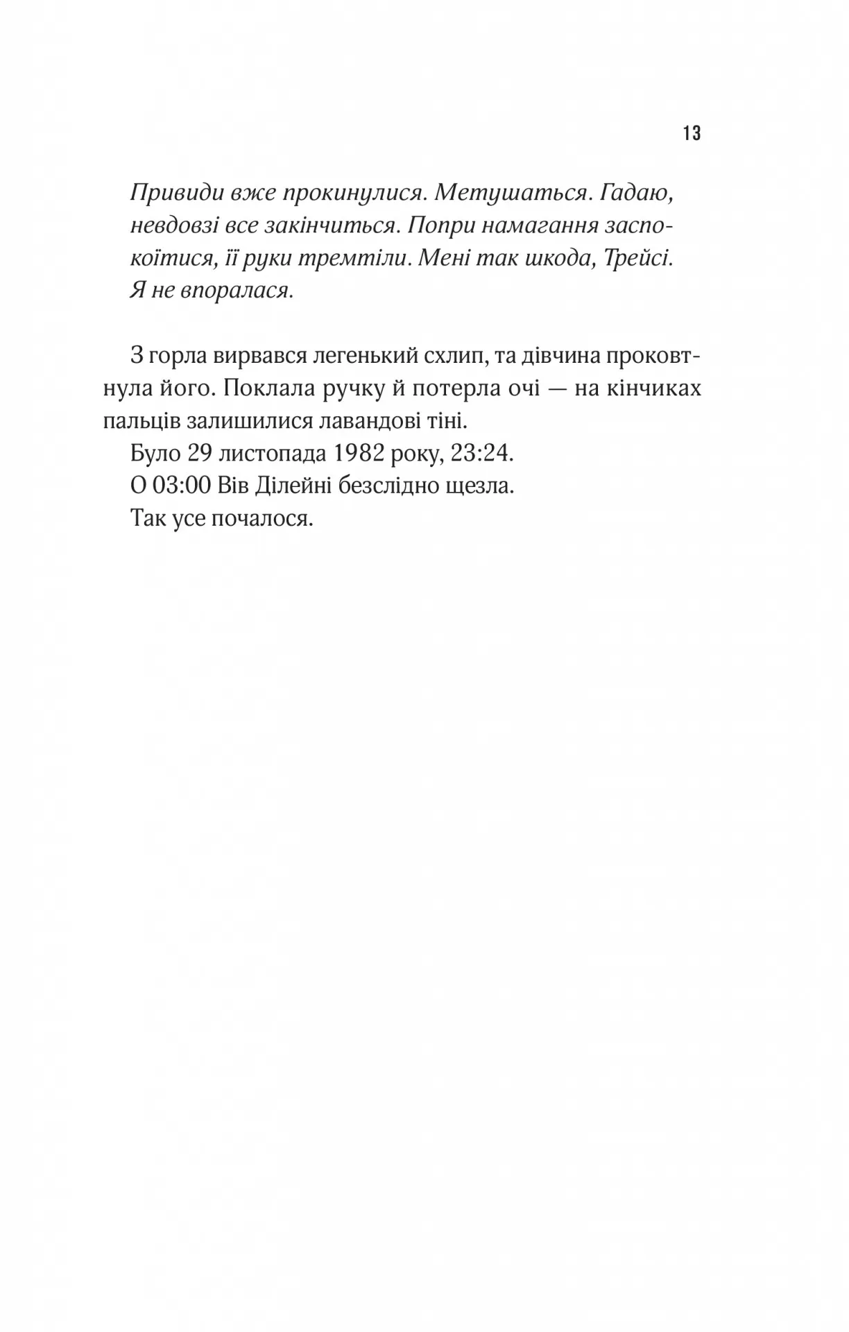 Роман переплітає паралельні сюжети двох жінок і занурює читача в атмосферу напруженого саспенсу та паранормальних явищ. Це історія про пошуки правди, сімейні таємниці та моторошні загадки, що приховує мотель Присмерк.